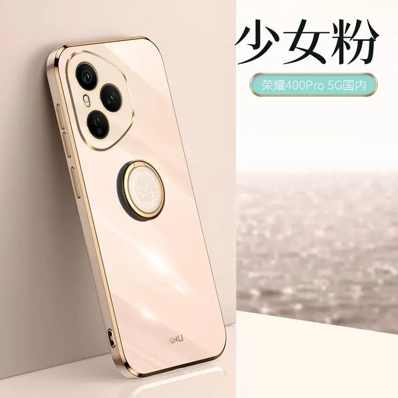 Case For Honor 400 Pro 400Lite TPU Luxury Soft Silicone Ring With Bracket Protection Back Cover For Huawei Honor 400 Pro Bumper