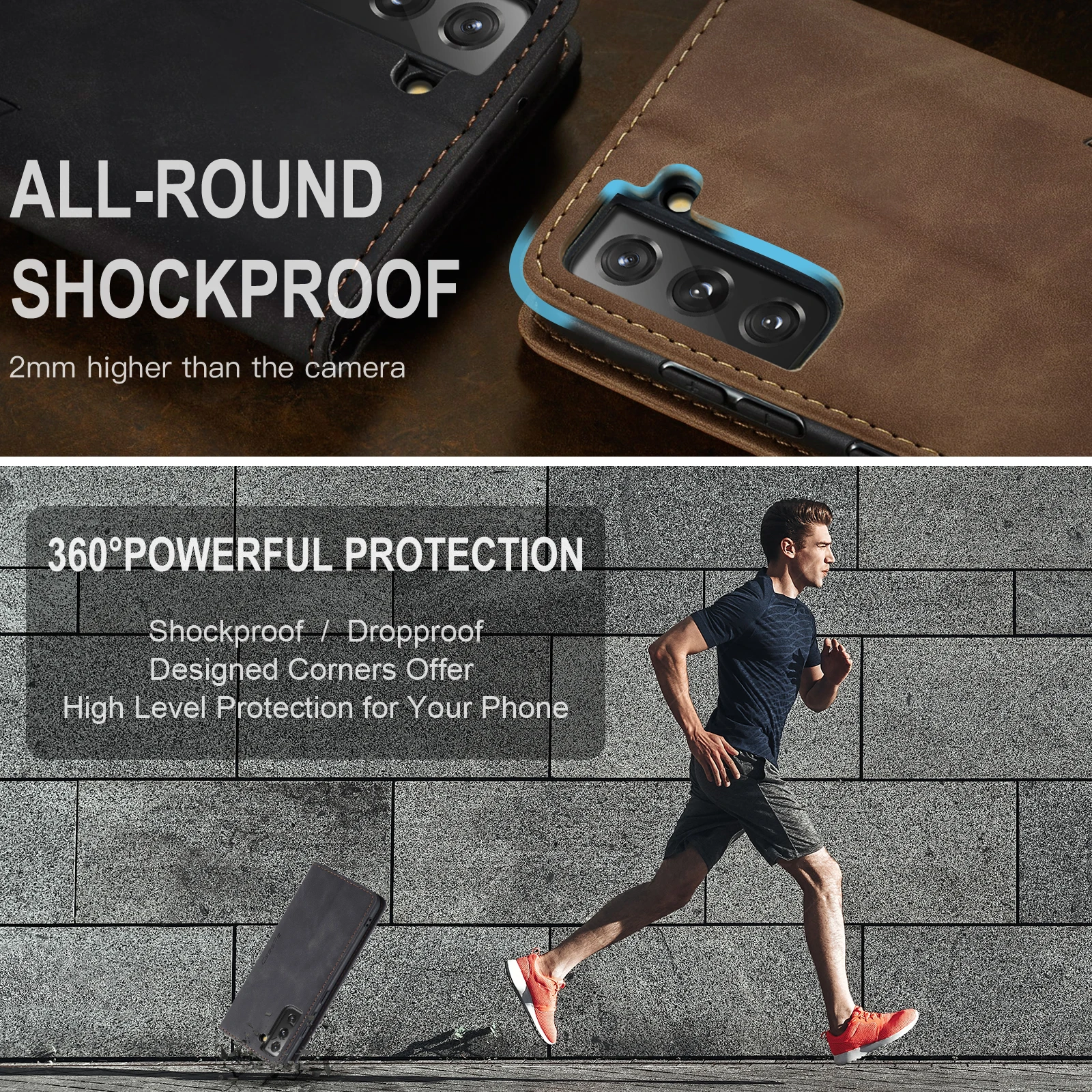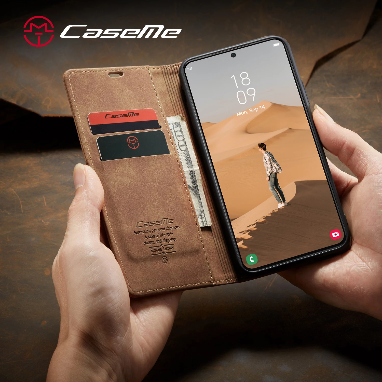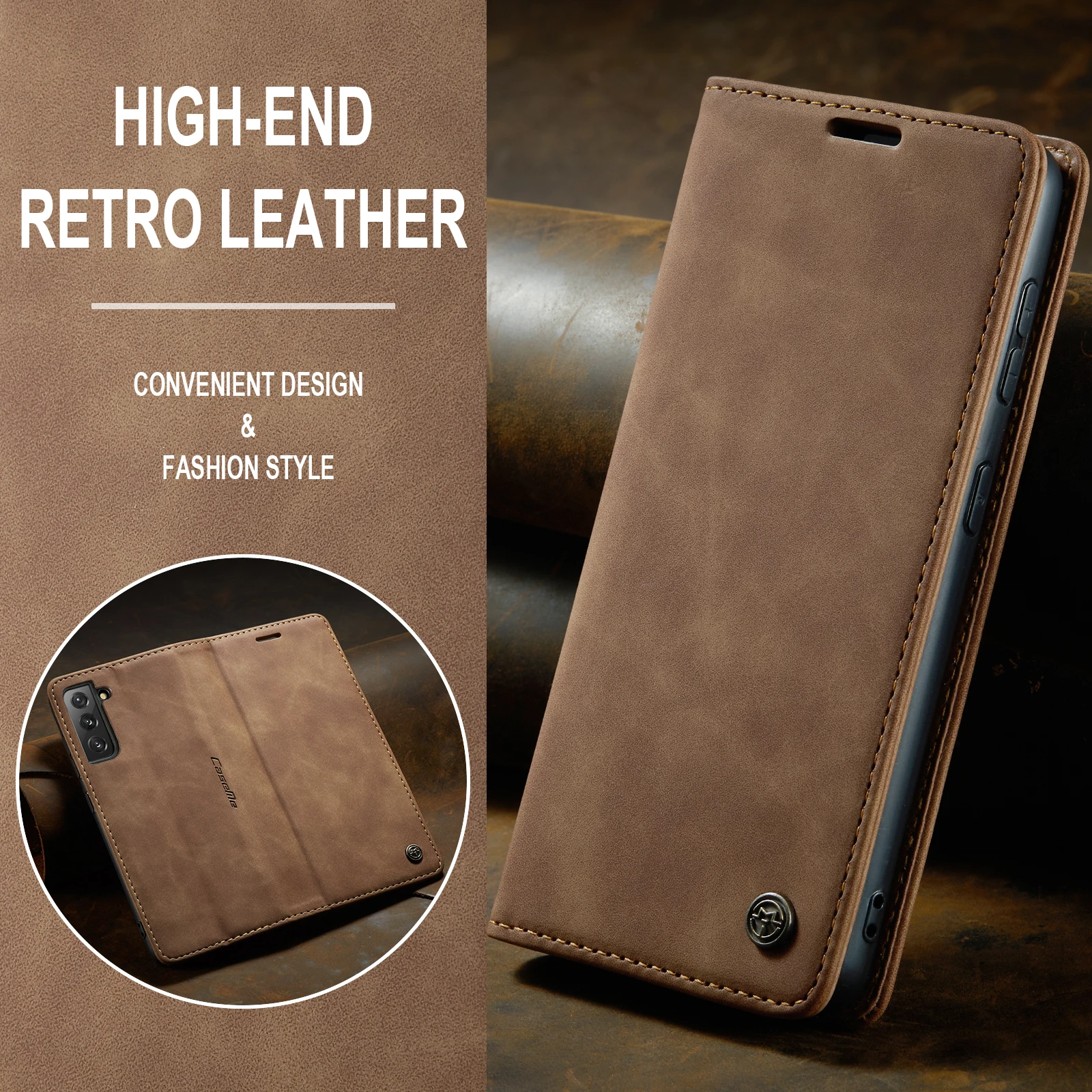 Comprar CaseMe-Funda de cuero PU para Samsung Galaxy S23, S22, S21, monedero Retro, tarjetero magnético, funda de teléfono para Galaxy S20 5G