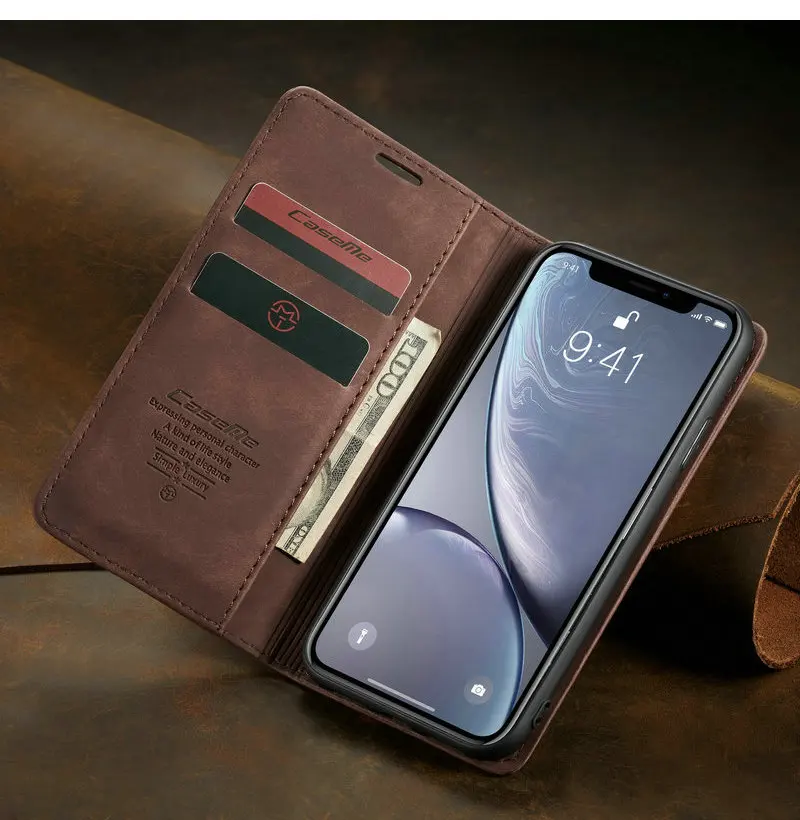 Comprar Caseme-funda de piel sintética para IPhone, carcasa trasera magnética para modelos 12, 13, 11 Pro, XS, Max, X, XR, SE, 2020, 8, 7 Plus, Samsung S21 y S20