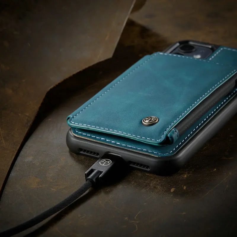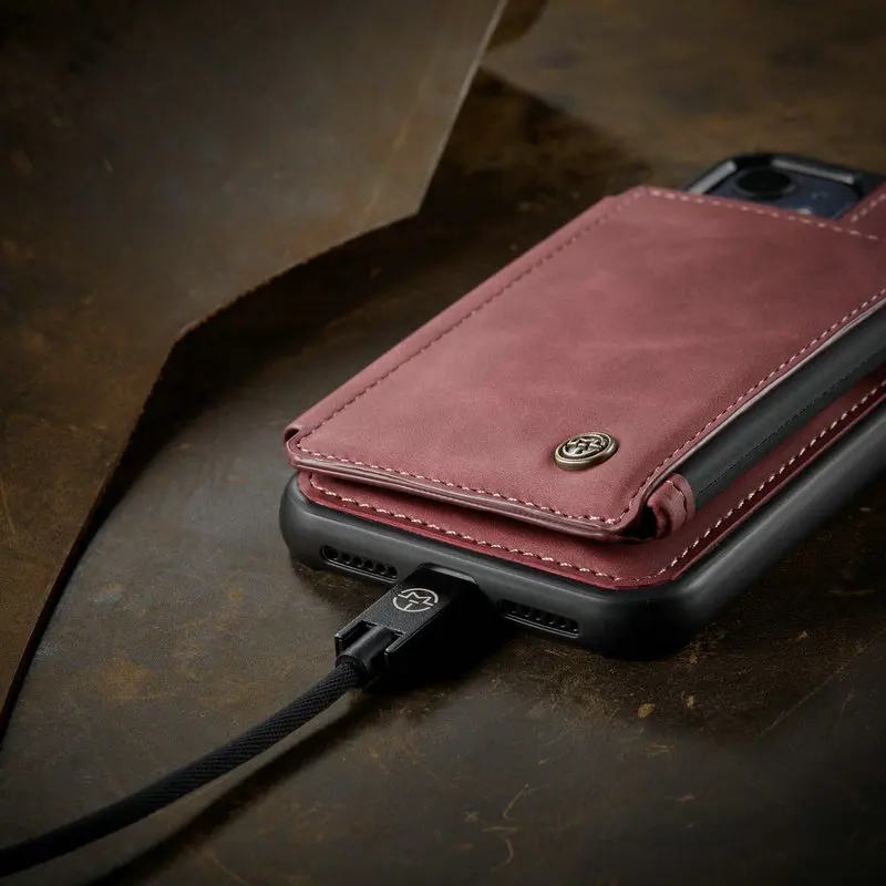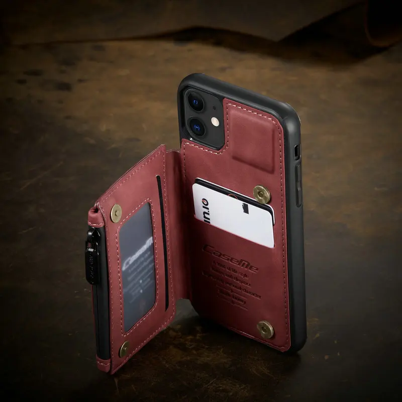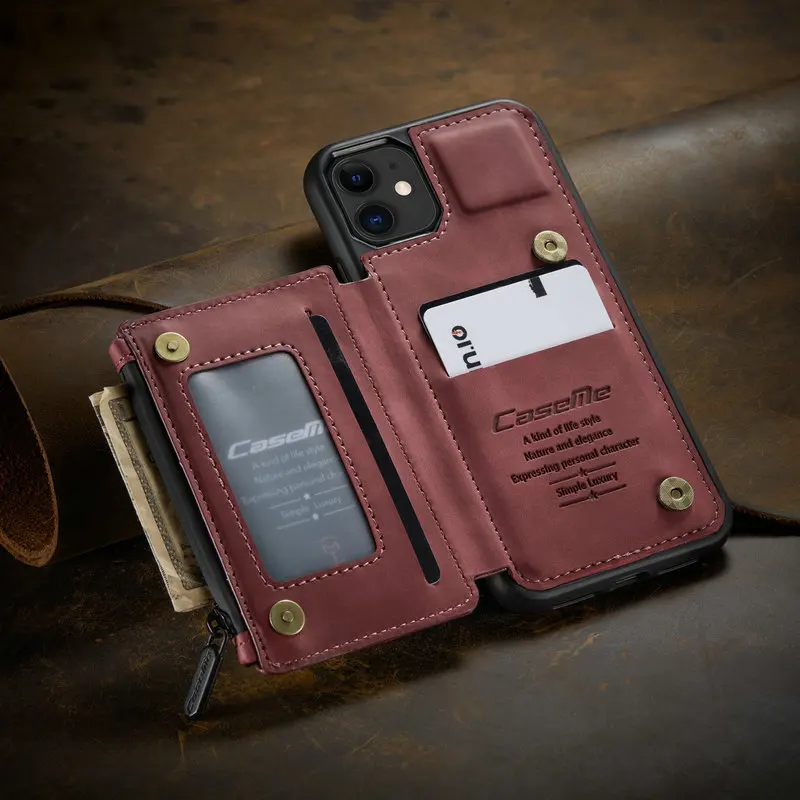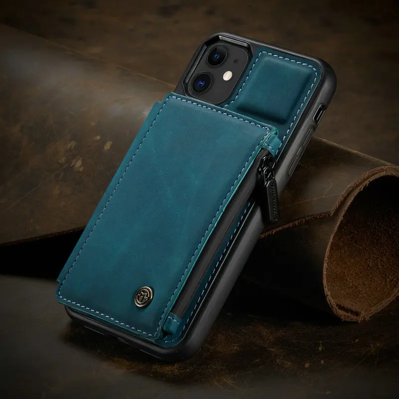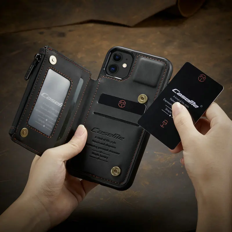 Comprar CaseMe-funda Retro mate de cuero PU para iPhone, carcasa trasera con cremallera para iPhone 14, 13, 12, mini, 11 Pro Max, X, S, XR, 7 y 8