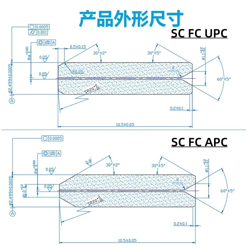 Virola de cerámica SC/APC 20 piezas FC APC ST conector de fibra óptica 2,5 mm virola desnuda 145um 220um 250um 400um 440um FTTH 250um 125um