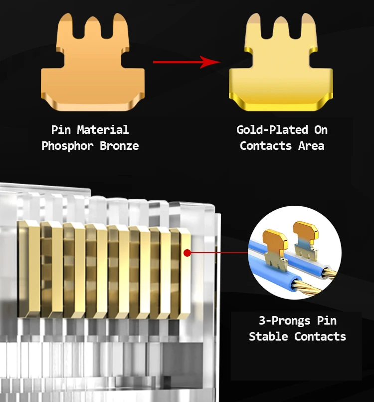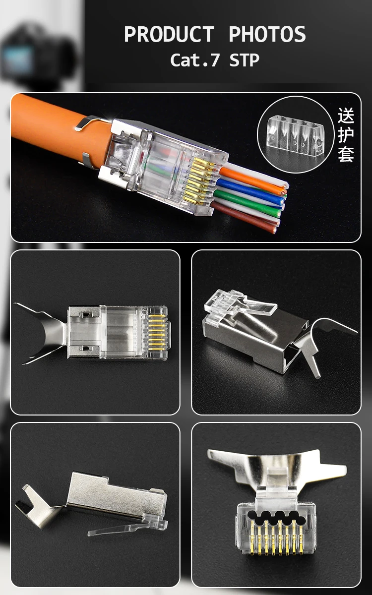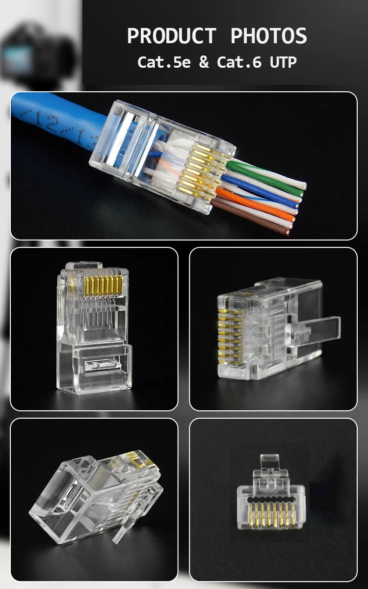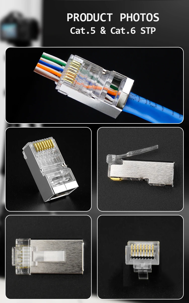 Comprar Cat 5e Cat 6 Cat 7 RJ45 8P8C Pasar a través de conectores de red de enchufe Modular para cables AWG23 24 26AWG UTP STP opcional