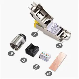 | Solución completa de cable blindado 1. Carcasa de metal resistente para una larga vida útil 2. El cilindro silenciador integrado reduce EMI/RFI 3. La bota de alivio de tensión de metal atornillable admite el peso del cable 4, la cubierta antipolvo RJ45 con clasificación IP20 protege los contactos 5, tapa de alimentación con códigos de color T568A y T568B 6. La cinta de lámina de cobre aumenta el blindaje | |