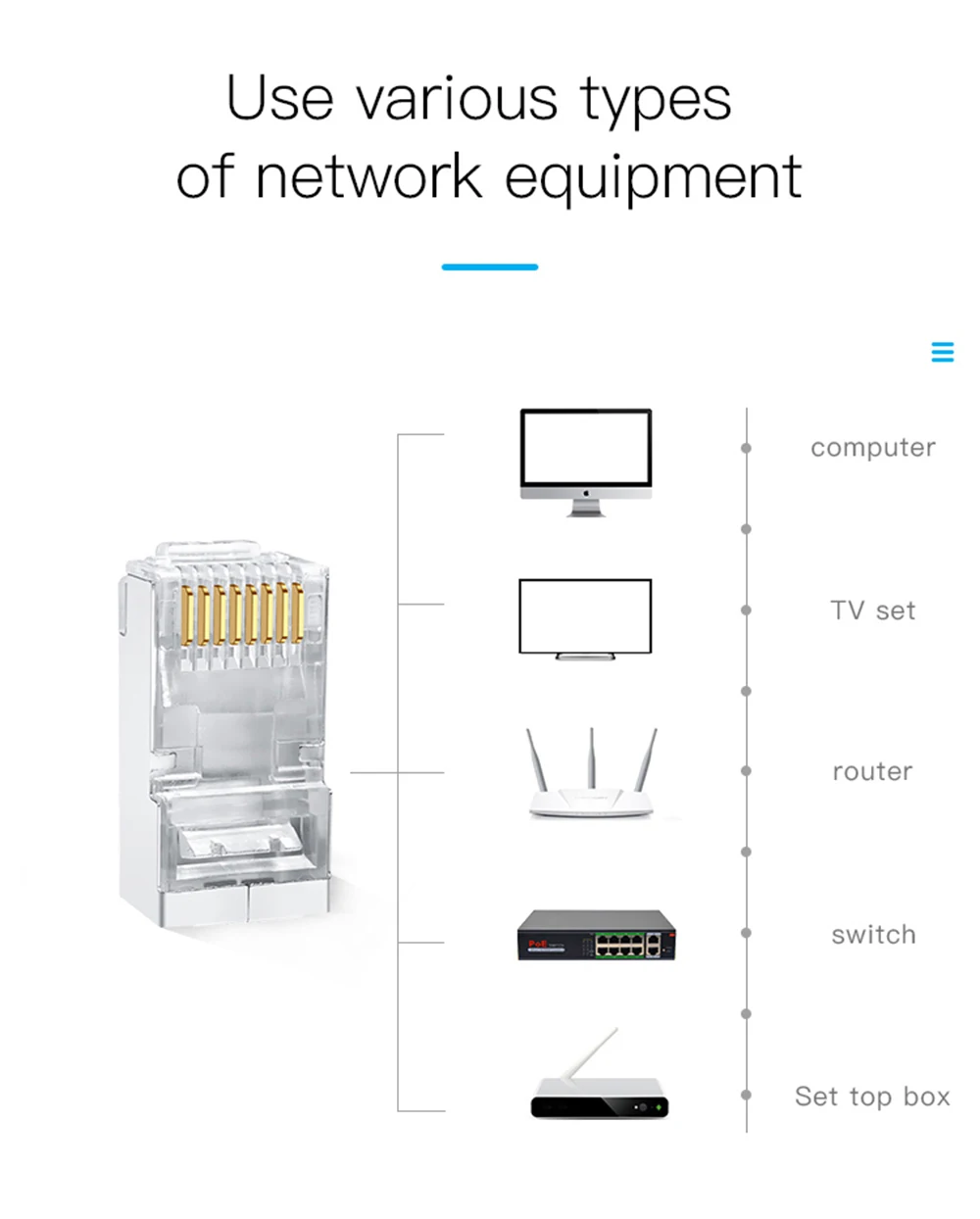 Cat6 Conector RJ45 8P8C Enchufe de cabeza de cable Ethernet modular Conector de red Cat 6 chapado en oro 100PCS Crystal 8Pin Adaptador de conector de enchufe modular RJ45 para Cat5 Cat5e Cat6 Rj 45 Enchufes de cable Et