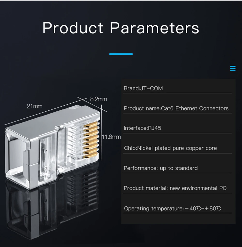 Comprar Cat6 Conector RJ45 8P8C Enchufe de cabeza de cable Ethernet modular Conector de red Cat 6 chapado en oro 100PCS Crystal 8Pin Adaptador de conector de enchufe modular RJ45 para Cat5 Cat5e Cat6 Rj 45 Enchufes de cable Et