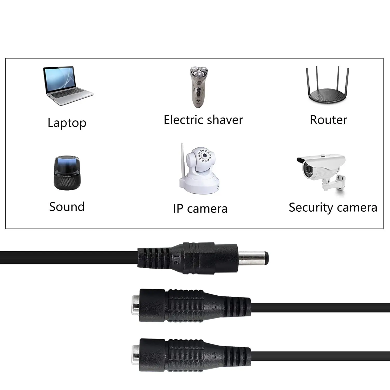 Adaptador divisor de Cable de alimentación CC de 5,5x2,5mm, 1 macho a 2 hembra, para CCTV