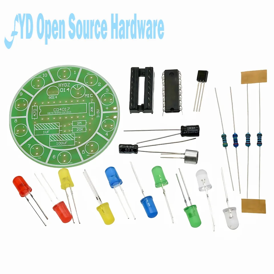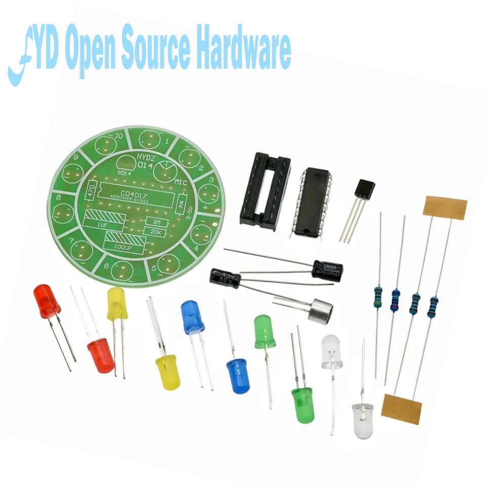 Comprar CD4017 Kit de luz LED giratoria controlada por sonido: juego de proyectos electrónicos de bricolaje con LED intermitentes de colores para aficionados