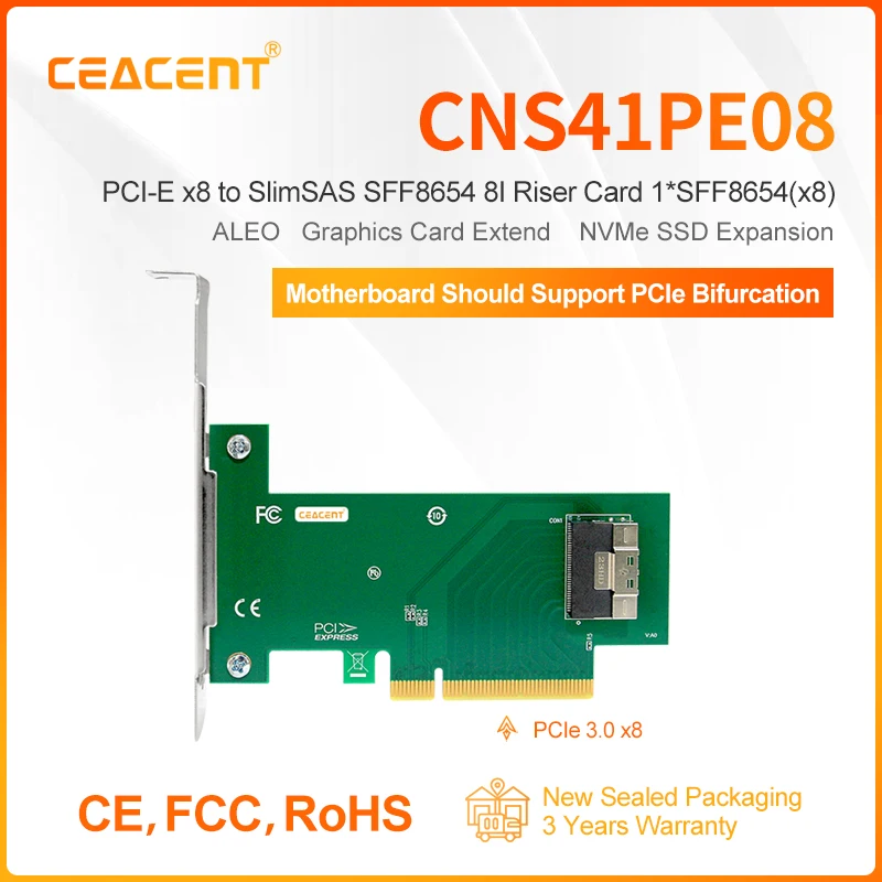 Comprar CEACENT-Adaptador de puerto único para extensión de tarjeta gráfica, ALEO y ranura PCIe, 3,0x8 a SFF8654 8I, CNS41PE08