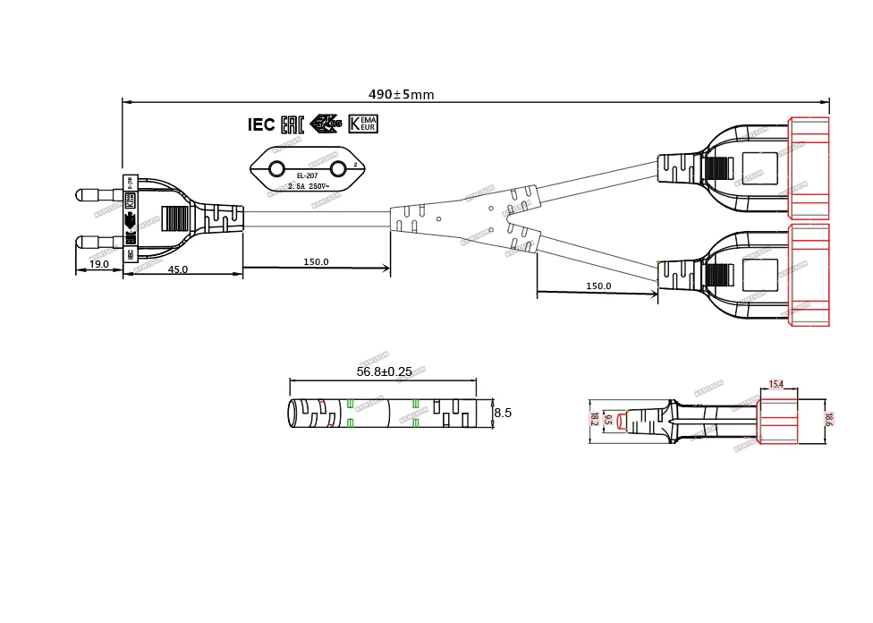 Comprar CEE7/16 EU 2 clavijas macho a hembra salida dual, cable de extensión de salida de 2 vías Cable divisor de corriente europeo M/F.
