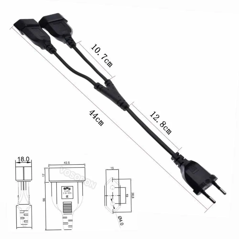 Comprar CEE7/16 EU 2 clavijas macho a hembra salida dual, cable de extensión de salida de 2 vías Cable divisor de corriente europeo M/F