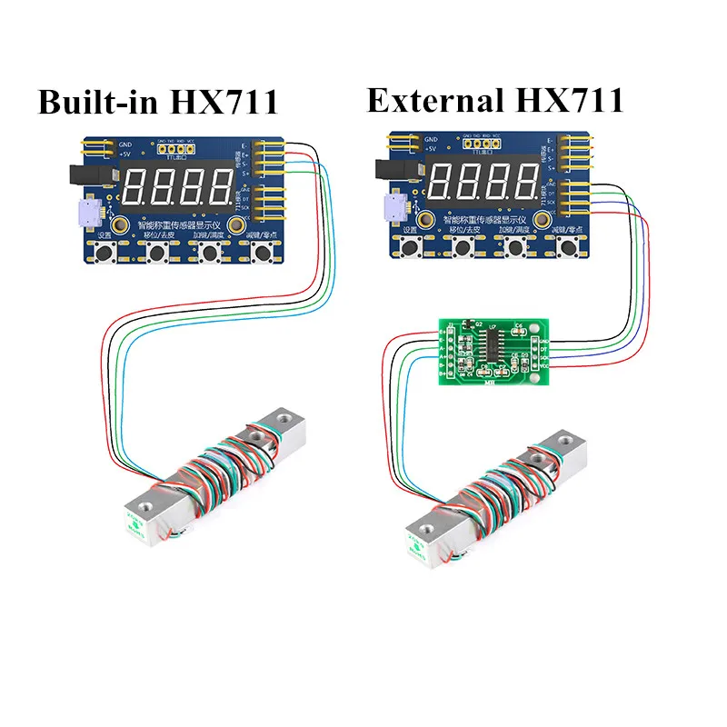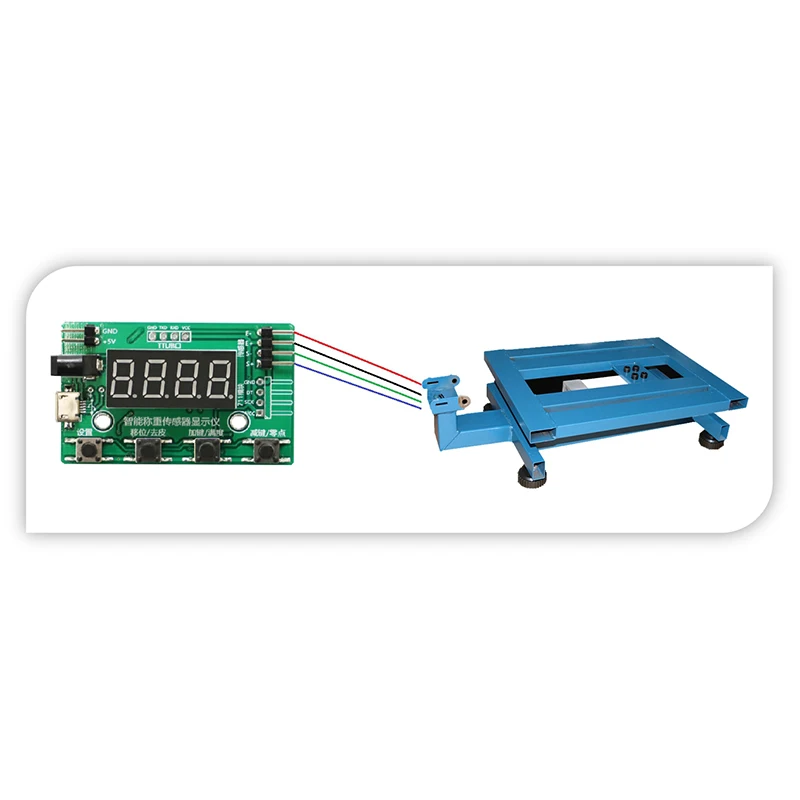 Key Function:Setting—Parameter setting key. In the setting state, it is used to store the new setting value of the parameter and enter the next setting parameter.Shift—When in the setting state, press this key to set the corresponding value. In working state, press this key for 3 seconds to peel.Add key—The set value increase key is used to increase the value in the setting state. In working state, press and hold for 3 seconds to calibrate fullness.Decrease key—The set value decrease key is used to decrease the value in the setting state. In the working state, press and hold for 3 seconds to calibrate the zero point.Parameter setting:dot Decimal point position, the range is 0 ~ 3. For example, the sensor range is 0-20Kg, which can be set to 2. Default 1ad-h acquisition speed, range 1-100 times / second. Default 20ts Send data regularly, 0-10.0s, when set to 0, send when the weight changes, send as fast as 3 times per second. Default 0.5 secondsWhen the en-b calibration is set to ON, press 3 seconds to enter the calibration in the working state. When set to OFF, press for 10 seconds to enter the calibration in the working state. ON by defaultini Restore factory settings, default is OFF. When set to ON, the factory settings are restored. OFF by defaultCalibration instructions, peeling:For example, suppose our calibration is now 100kg sensor.Zero calibration: Press and hold the minus key for 3 seconds, the screen displays -PL-, and then release the minus key to enter the calibration state. Do not put weight on the scale. Enter 0 on the module and press OK. Display -End zero calibration is complete.Full-scale calibration: Press and hold the plus button for 3 seconds, the screen displays -PH-, and then release the minus button to enter the calibration state. It can be put on a weight of 20 ~ 100kg, how much kg is put. We enter the weight value on the module and press OK. Display -End full scale calibration is complete.Tare: Be sure to calibrate the zero point during the first calibration, not just press Tare, and let the meter display the zero point. Zero point calibration does not refer to true zero load. Zero point can be calibrated under the condition of tare weight, for example, the sensor range is 100kg, the tare weight is 3Kg (unknown tare weight can be 0Kg by default), and the standard 35Kg weight is available. When the zero point is calibrated, no 35Kg weight is added, and the calibration PL=0.0Kg or 3.0Kg; after adding a 35kg load, the calibration PH=35.0Kg or (38.0Kg) is sufficient.