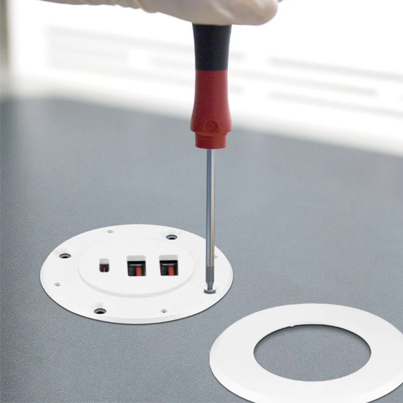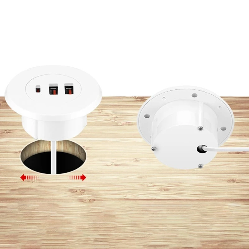 Este inserto de escritorio redondo está diseñado exclusivamente para carga de 5 V sin funcionalidad de transferencia de datos.