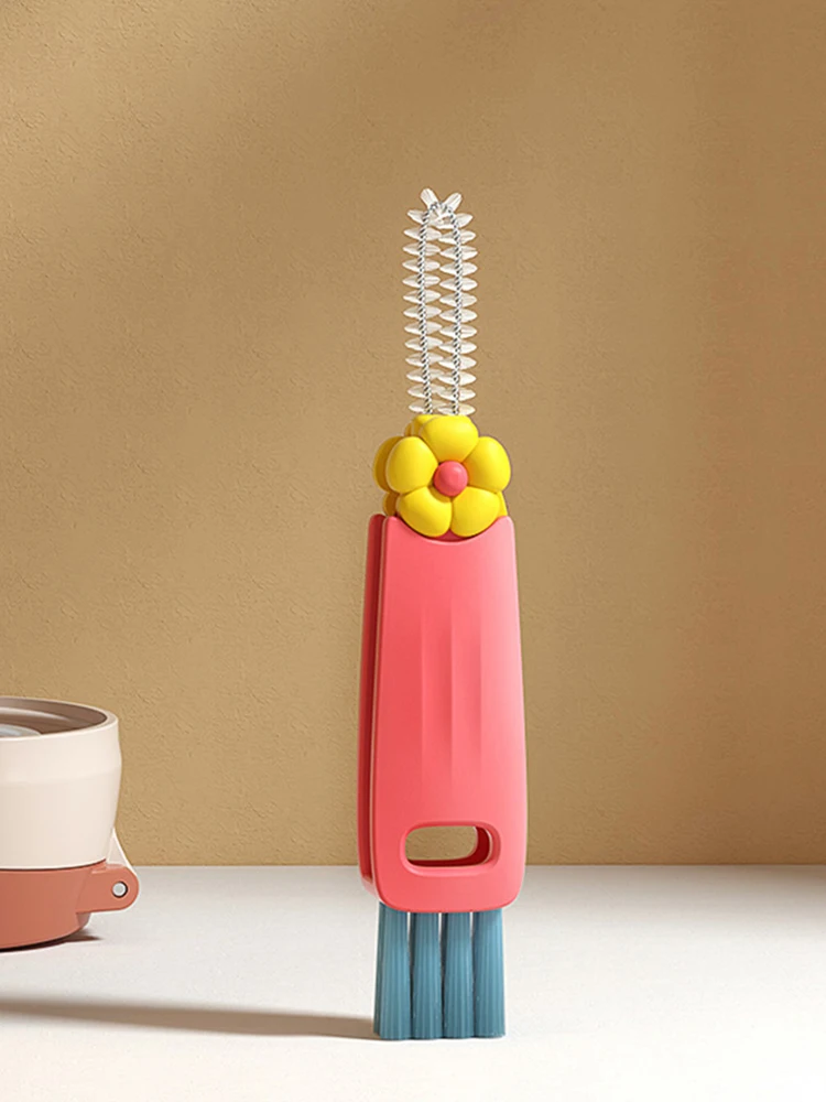 Cepillo de silicona para botellas, cepillo de limpieza para botellas, limpiador multifuncional para portavasos, Herramientas de limpieza de cocina giratorias 3 en 1