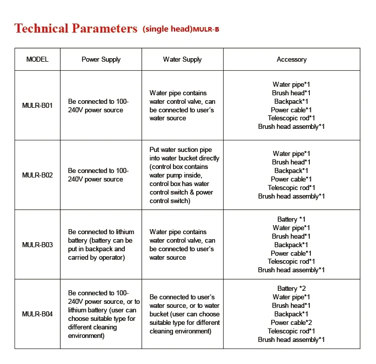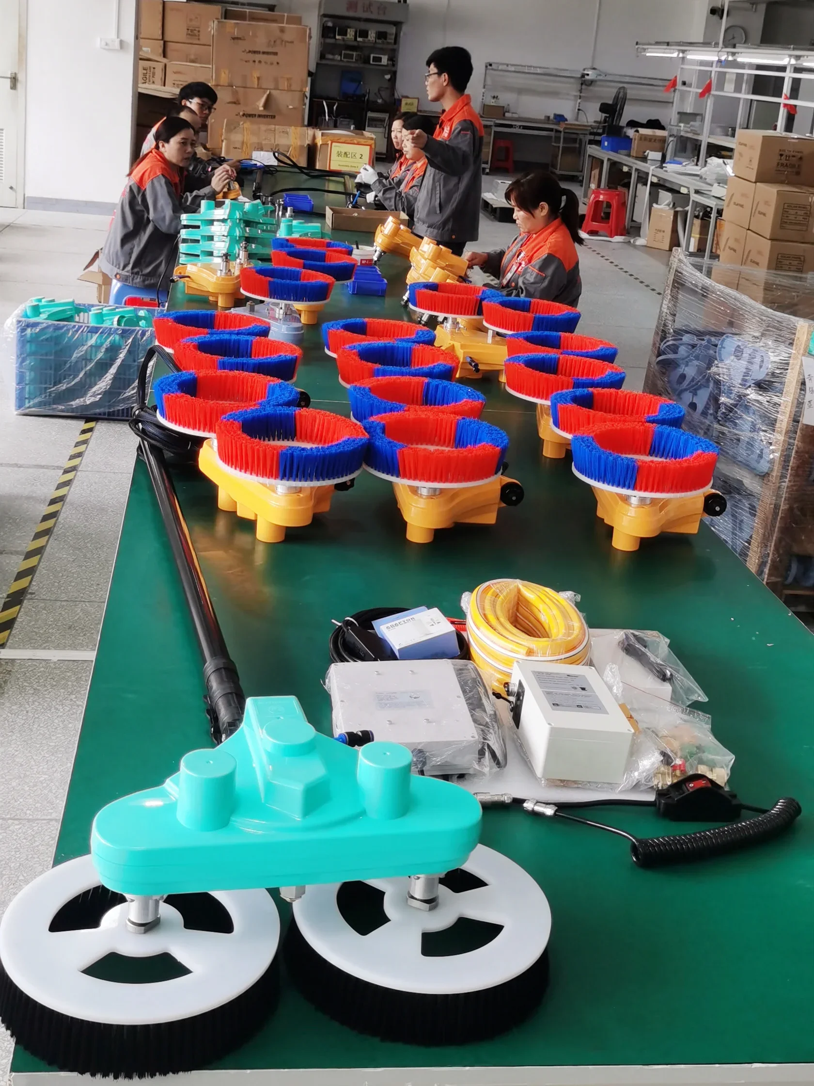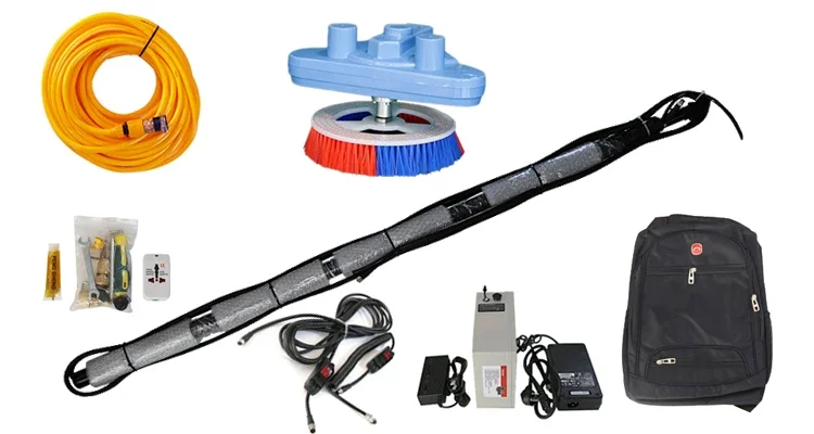 Modelo número Suministro eléctrico Mango cepillo Descripción del modelo Cepillo de limpieza automático con 2 motores Batería de litio DC 3,5 metros Mango telescópico (aleación de aluminio)
