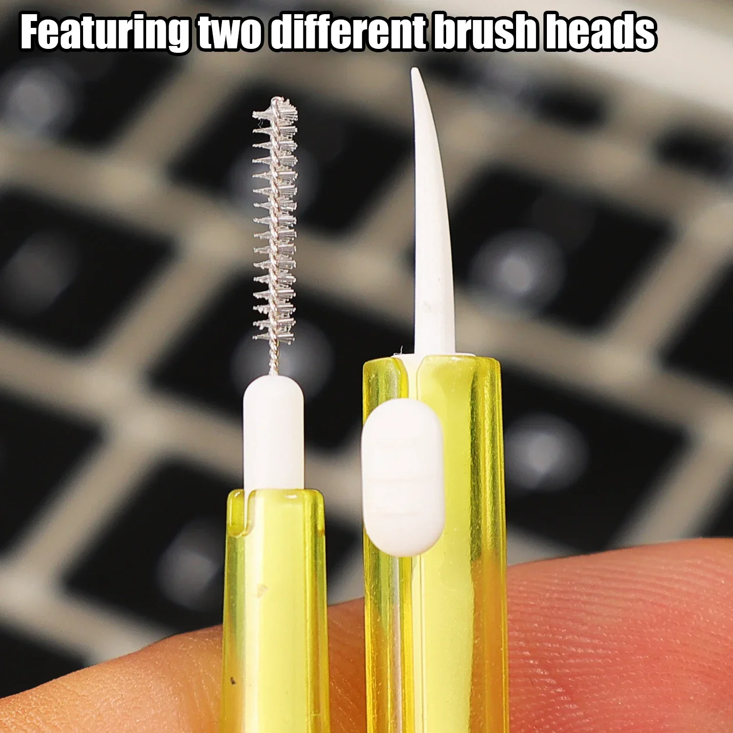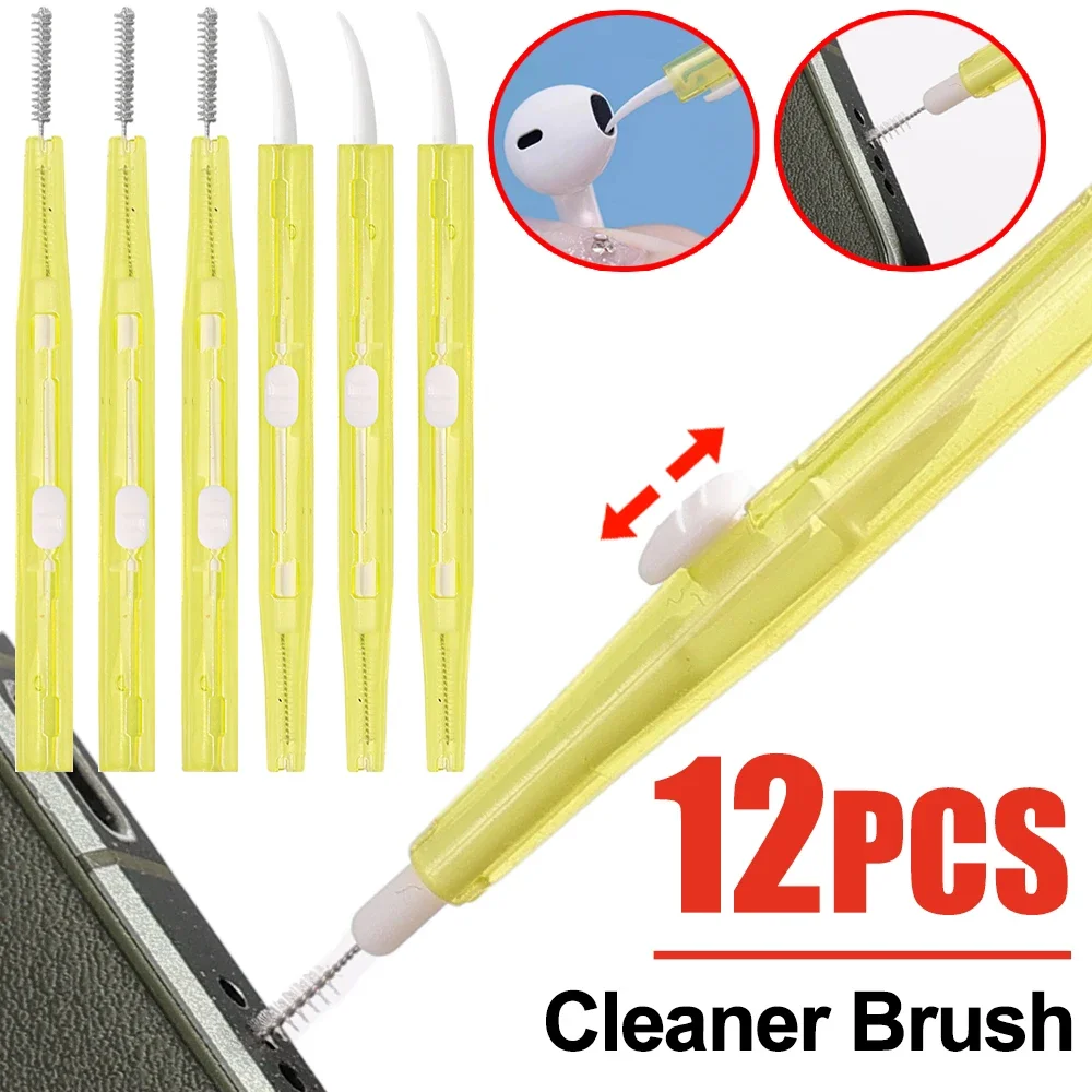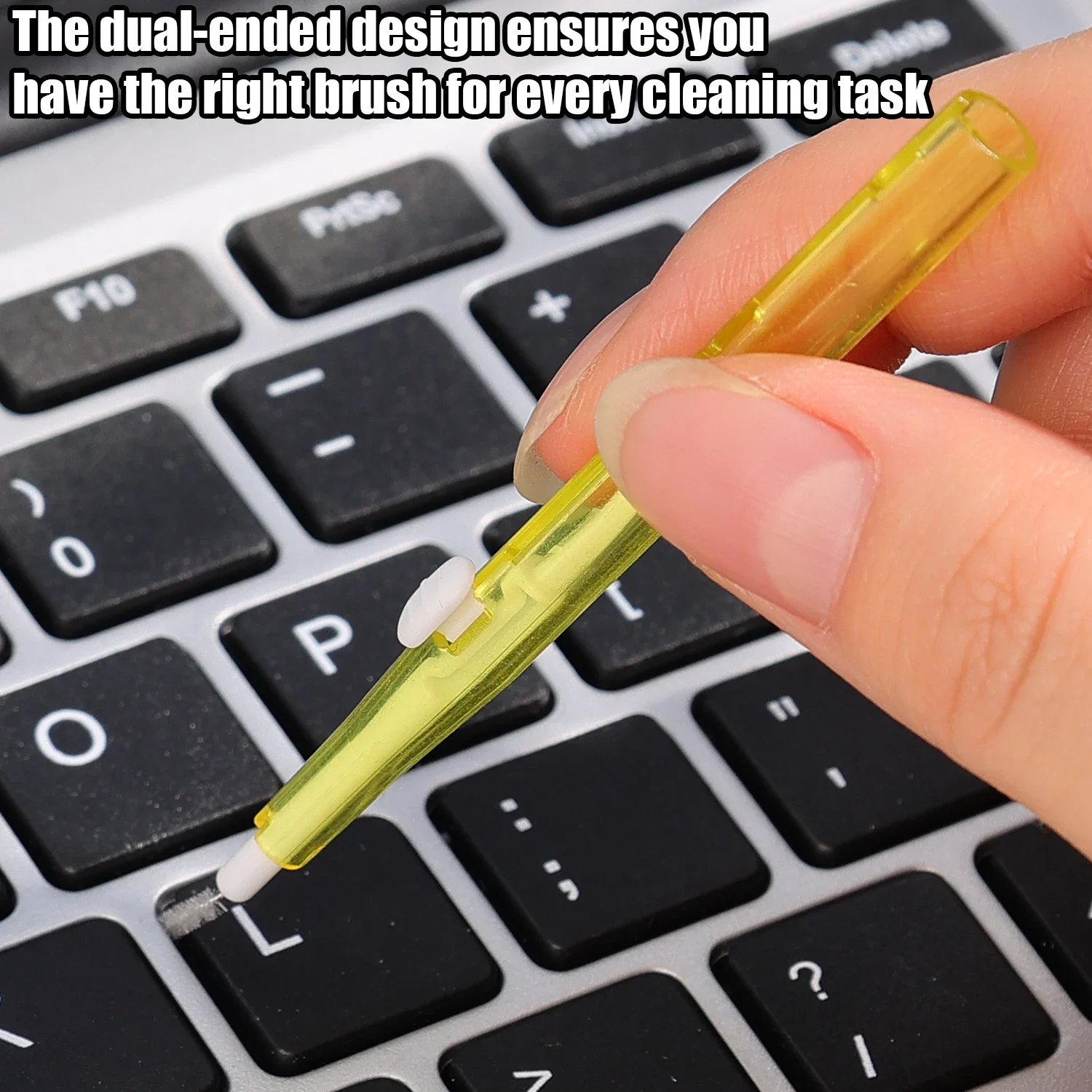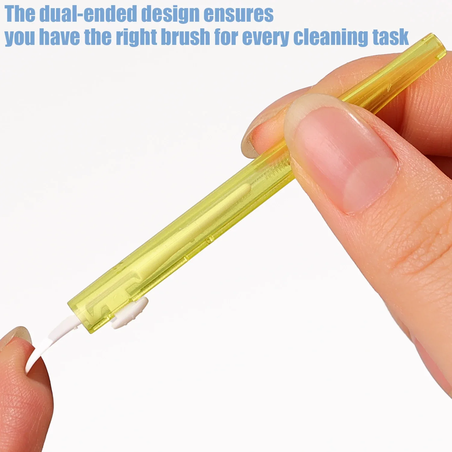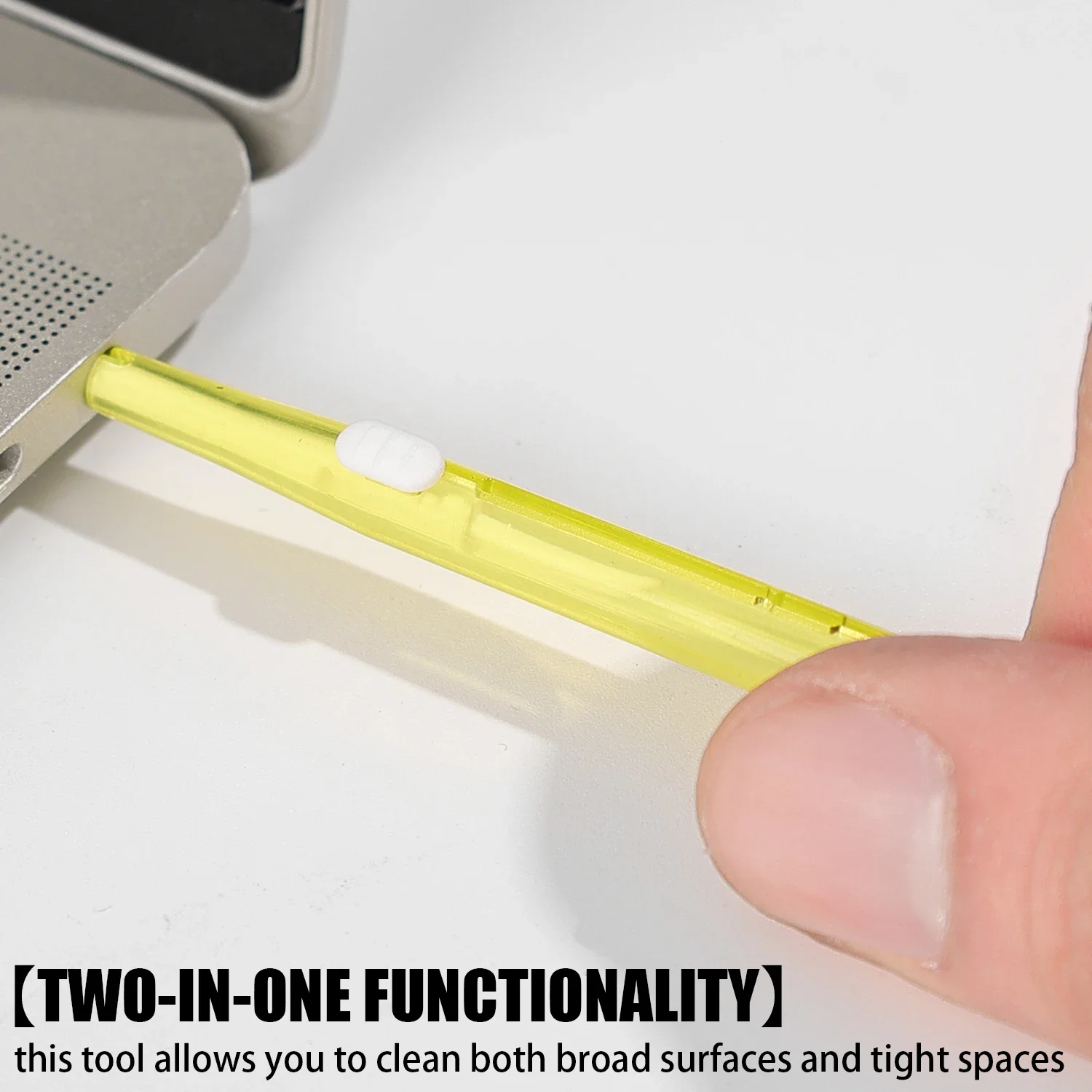 【LIMPIEZA SIN ESFUERZO】: Nuestro cepillo de limpieza de dos cabezas está diseñado para facilitar la limpieza de pequeños rincones y rincones de su teléfono y auriculares.Fabricada con plástico duradero, esta herramienta de limpieza amarilla tiene el tamaño perfecto de aproximadamente 6,8 cm de largo, lo que garantiza que pueda llegar fácilmente a aquellas áreas difíciles de limpiar sin causar ningún daño.