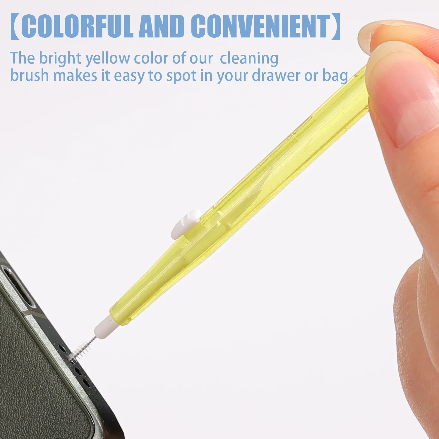 【COLORIDO Y CONVENIENTE】: El color amarillo brillante de nuestro cepillo de limpieza hace que sea fácil de colocar en su cajón o bolso, lo que garantiza que nunca lo pierda.Su tamaño compacto hace que sea cómodo de transportar, para que puedas limpiar tus dispositivos mientras viajas.