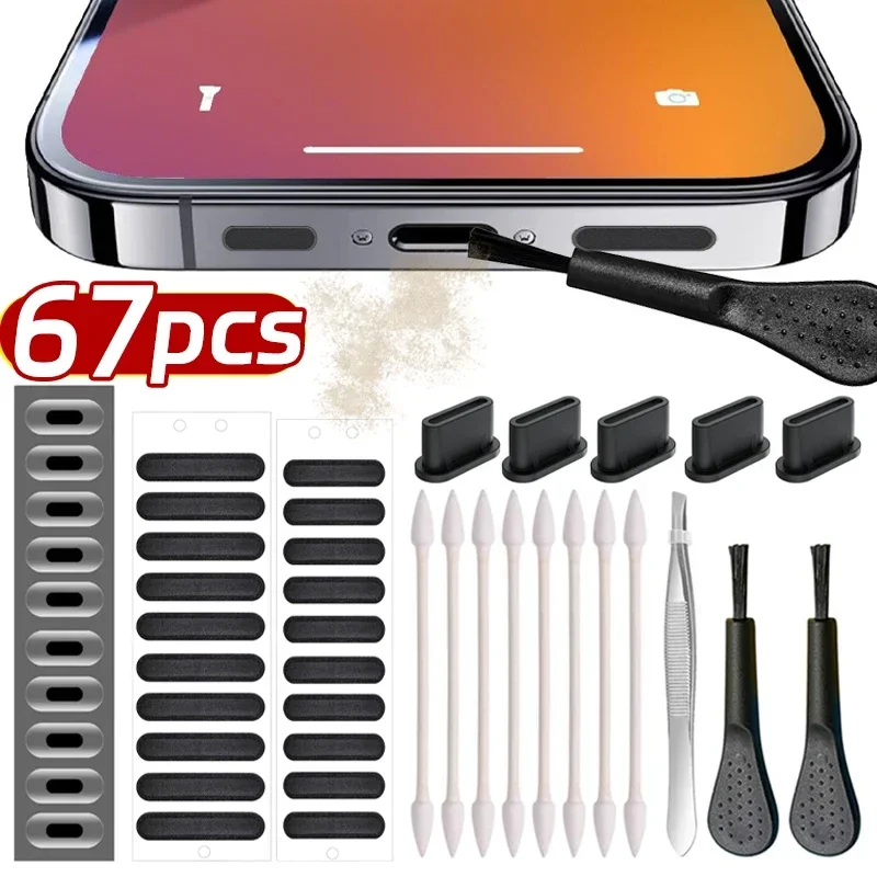 Comprar Cepillo de limpieza Universal a prueba de polvo para teléfono móvil Apple/Tipo C/Micro USB, tapones antipolvo con pinzas, juego de proyectores de altavoces para teléfono