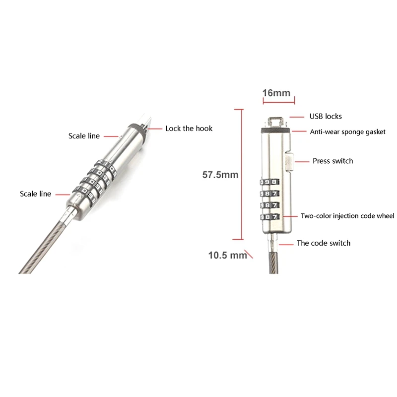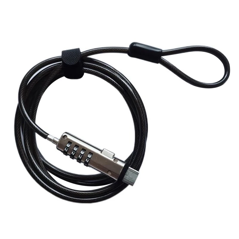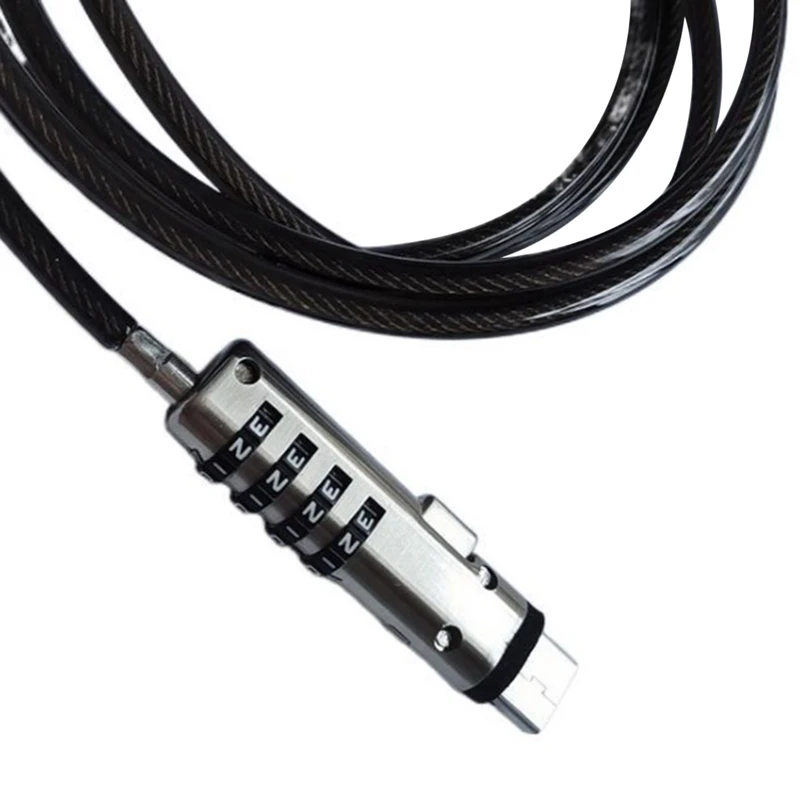 Bloqueo antirrobo con contraseña USB de seguridad, utilizado para la función antirrobo en computadora portátil, tableta, proyector, TVCable de seguridad de acero negro 5.0, 4 códigos de rueda digitales y hasta 10.000 combinaciones reiniciables