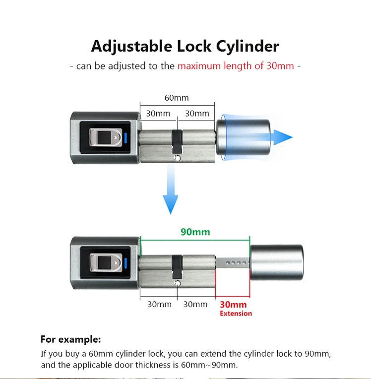 Nota: Esta cerradura tiene diferentes longitudes de cilindro, elija la longitud adecuada para la compra.