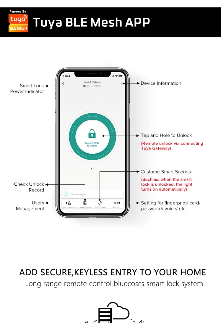 Cerradura electrónica inteligente Tuya BLE, Control remoto por Bluetooth, cilindro inteligente impermeable, huella dactilar, desbloqueo de teclas de aplicación para el hogar