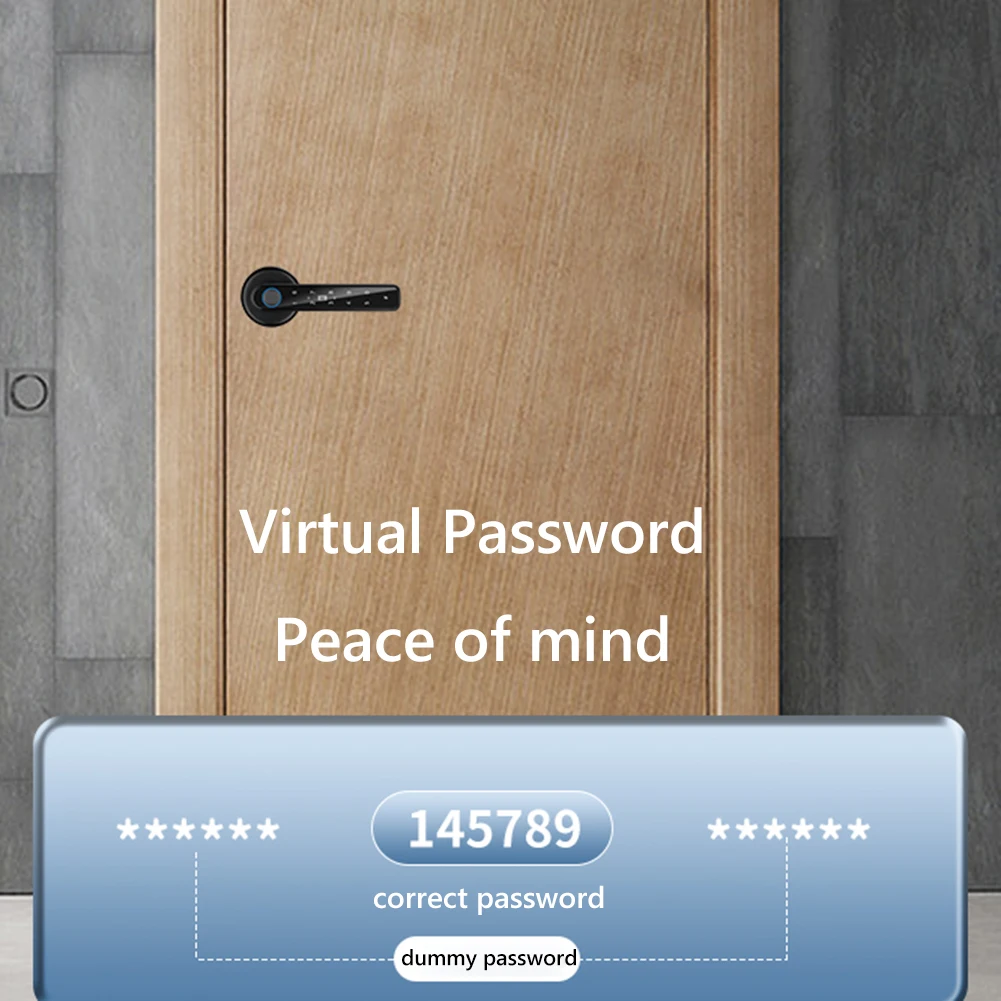Cerradura de puerta Anti Peeping Fingerprint Security Handle Lock TTLOCK APP Control Tipo-C Carga de emergencia para puertas de 3,5-6,5 cm de espesor Característica: 1. Múltiples métodos de desbloqueo:Esta cerradura inteligente ofrece una variedad de opciones de desbloqueo para satisfacer diferentes necesidades. Incluye Reconocimiento de huellas dactilares semiconductor (capacidad de 50 huellas dactilares), entrada de contraseña digital (150 combinaciones), acceso a tarjetas IC (2 tarjetas) y llaves de respaldo mecánicas tradicionales (2 teclas). 2. Aplicación inteligente TTLOCK:La cerradura inteligente se puede administrar fácilmente a través de la aplicación TTLOCK, lo que permite a los usuarios agregar o eliminar usuarios, cambiar permisos de acceso, administrar contraseñas de usuario (establecer período de validez, eliminar, verificar el estado), y monitorear los registros de apertura/cierre de forma remota. Las contraseñas se pueden enviar a amigos y familiares para acceso remoto sin necesidad de conexión a Internet. 3. Acceso conveniente con modo "siempre abierto":El bloqueo se puede cambiar al modo "Siempre abierto", eliminando la necesidad de verificación y permitiendo un acceso rápido. Al presionar el botón "Siempre abierto" del mango durante 1 segundo, el modo de bloqueo se puede cambiar al instante. En caso de batería baja o agotamiento completo, la cerradura aún se puede abrir con las teclas de respaldo. El candado también cuenta con un puerto de carga de energía de un cargador portátil, lo que permite un suministro de energía temporal. 4. Seguridad mejorada para proteger contra manipulación y acceso no autorizado:La cerradura está diseñada con una manija separada que evita daños maliciosos y protege los componentes internos. El Mango se puede intercambiar para uso con zurdos o diestros. El teclado táctil se ilumina al entrar en la sala de estar, lo que garantiza practicidad y comodidad. El mango no se puede activar sin verificar las huellas dactilares. La cerradura incorpora un diseño anti-Pío, lo que le permite introducir cualquier código aleatorio antes y después de la contraseña correcta, garantizando su seguridad y la de su familia. 5. Construcción Robusta:El cabezal de bloqueo está hecho de material de aleación de zinc duradero y fuerte, lo que evita eficazmente los intentos de acceso ilegal. Su estructura reforzada y su diseño endurecido proporcionan una excelente resistencia contra los daños externos. Además, la cerradura muestra una excelente capacidad de carga, lo que garantiza un rendimiento y fiabilidad duraderos. Especificación: Certificación: CE Origen: China continental Material: Aleación de zinc Color: negro, plata (opcional) Método de desbloqueo: Aplicación, contraseña, huella digital, llave mecánica, tarjeta IC Aplicación: TTLOCK APP Estándar compatible con Bluetooth: compatible con Bluetooth 4,1 BLE Tipo de cabezal de huella dactilar: cabezal de huella dactilar semiconductor Capacidad de huellas dactilares: 50 piezas Tasa de rechazo (FRR): 1.0% Tasa de admisión falsa (FAR): 0.001% Tiempo de desbloqueo: aproximadamente=1,5 segundos Tipo de tecla: botón táctil capacitivo Número de contraseñas: contraseñas personalizadas y permanentes: 150 Otras contraseñas dinámicas: 150 Nivel del cilindro de bloqueo: Cilindro de bloqueo de nivel C Modo de fuente de alimentación: 4 pilas secas alcalinas (no incluidas)/carga de emergencia de. Voltaje de alarma de bajo voltaje: 4,8 V Rango de voltaje: 4,5-9V Corriente de espera: 65 microamperios Corriente de trabajo: menos de 200 mA Voltaje de salida de la interfaz del motor: voltaje de la batería reducido en 0,3 V Sistemas móviles compatibles: Android 4,3/para IOS 7.0C o superior Rango de temperatura de trabajo: -20-70 grados Celsius Rango aplicable: puertas con un grosor de 3,5-6,5 cm Cilindro de bloqueo: 25mm x 60-70mm, ajustable Tamaño: aproximadamente 160x65x28mm/6,29x2,55x1,10 pulgadas Peso: 800g Atención: el producto viene con un manual en inglés. Siga nuestras instrucciones para instalar y configurar la manija de la puerta inteligente. Nota: