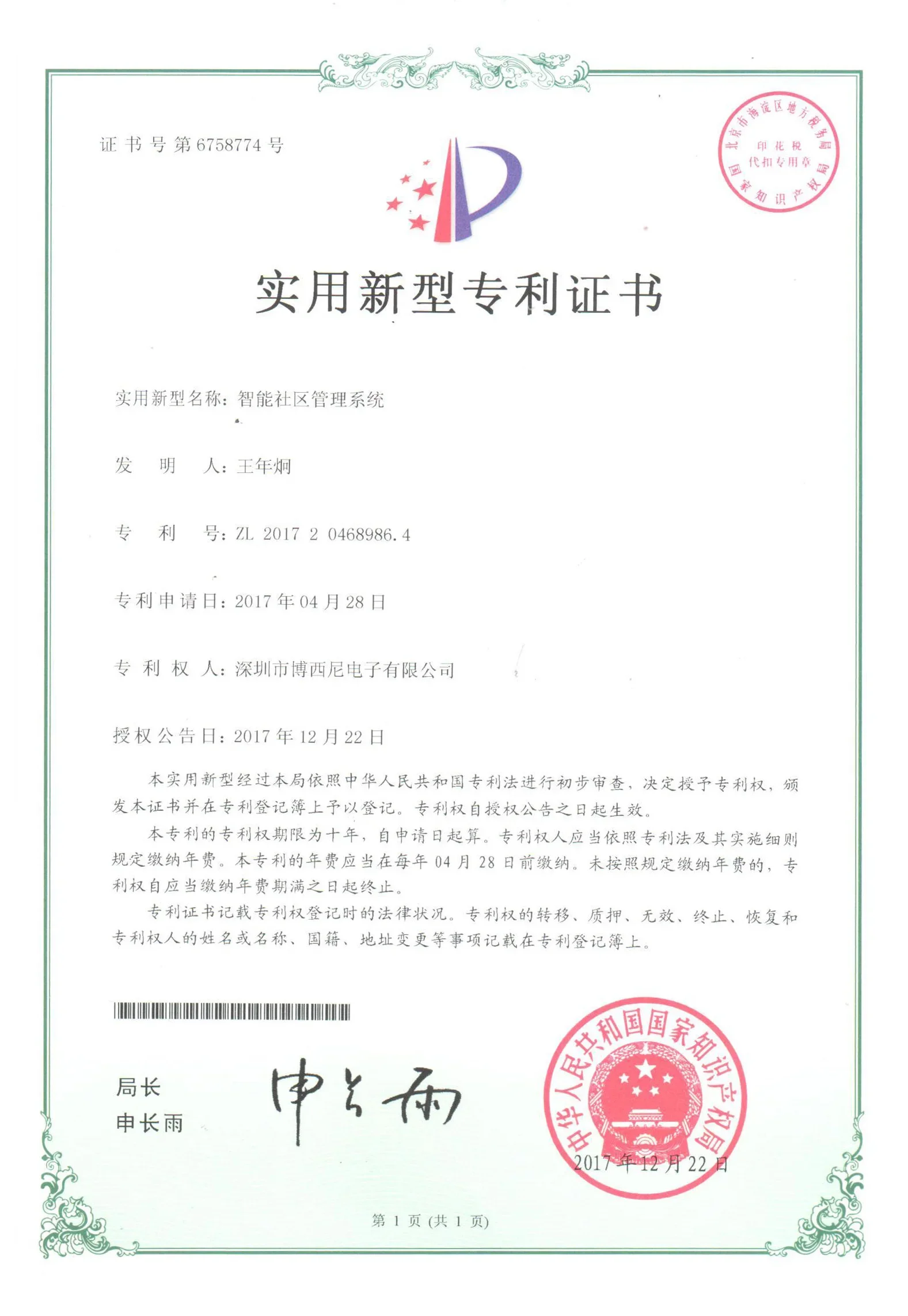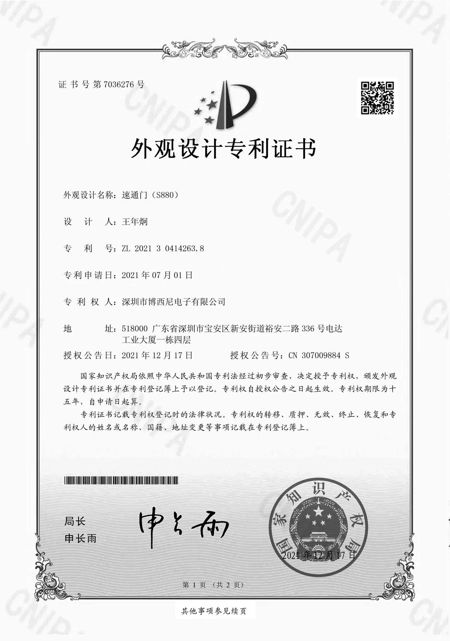 l. Historia de 14 años con “BOSINY” Marca: (número de marca registrada: 8708527) 2.Bosiny es una empresa de alta tecnología y una de las 10 principales marcas de control de acceso en China.3.Clientes de marca: Poly Center, Liangjiang International, Tiantou International Business Center, China Merchandants Magic Cube, etc.Una solución integral�