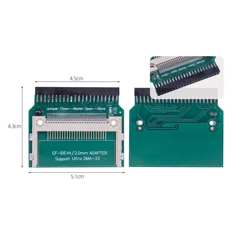 6. Los adaptadores IDE CF (ide-cf) son adaptadores que conectan TARJETAS flash compactas a la interfaz de host de 2,5 pulgadas. Esta unidad permite el uso de TARJETAS compactas Flash como discos duros.