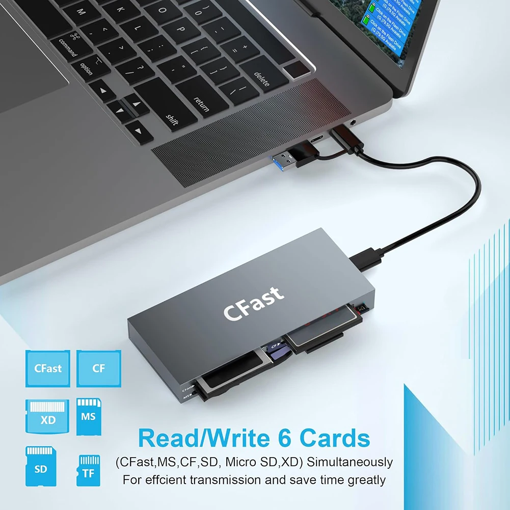 Lector de tarjetas CFast leer 6 tarjetas simultáneamente lector de tarjetas multifunción adaptador de tarjeta de memoria CFast para tarjeta CFast CF MS SD TF XD