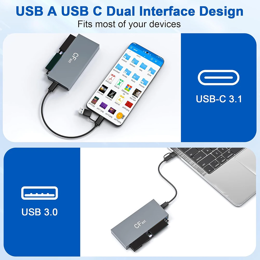 5. Construcción de aluminio duradero:Diseñado con un diseño compacto y portátil, este lector de tarjetas USB no solo ahorra espacio, sino que también es fácil de transportar. Su carcasa de aleación de aluminio garantiza que el lector de tarjetas CFast sea robusto y de calidad superior para una durabilidad duradera.