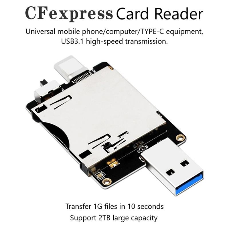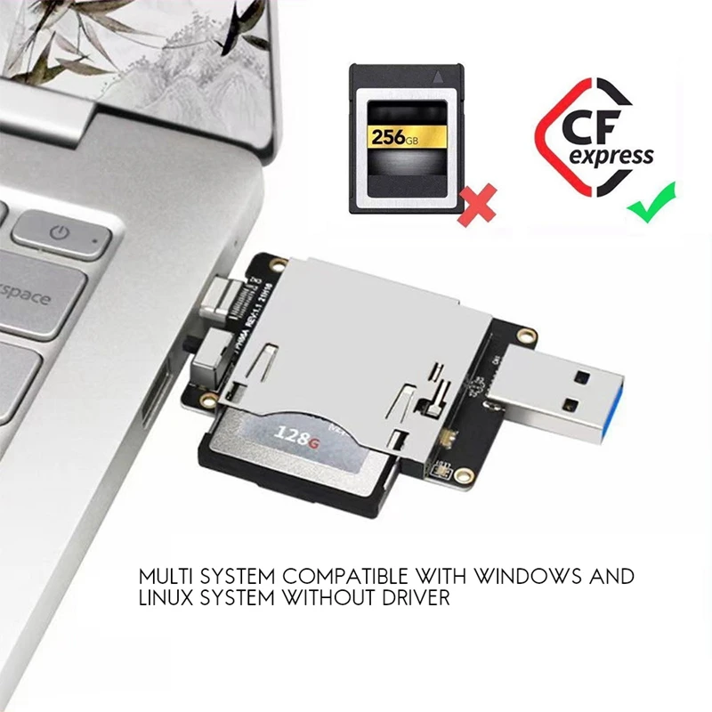 Comprar CFexpress-lector de tarjetas USB 3,0 tipo A/USB3.1 tipo C, adaptador elevador de 10Gbps A CF Express, Chip JMS583 para memoria CF Express tipo B