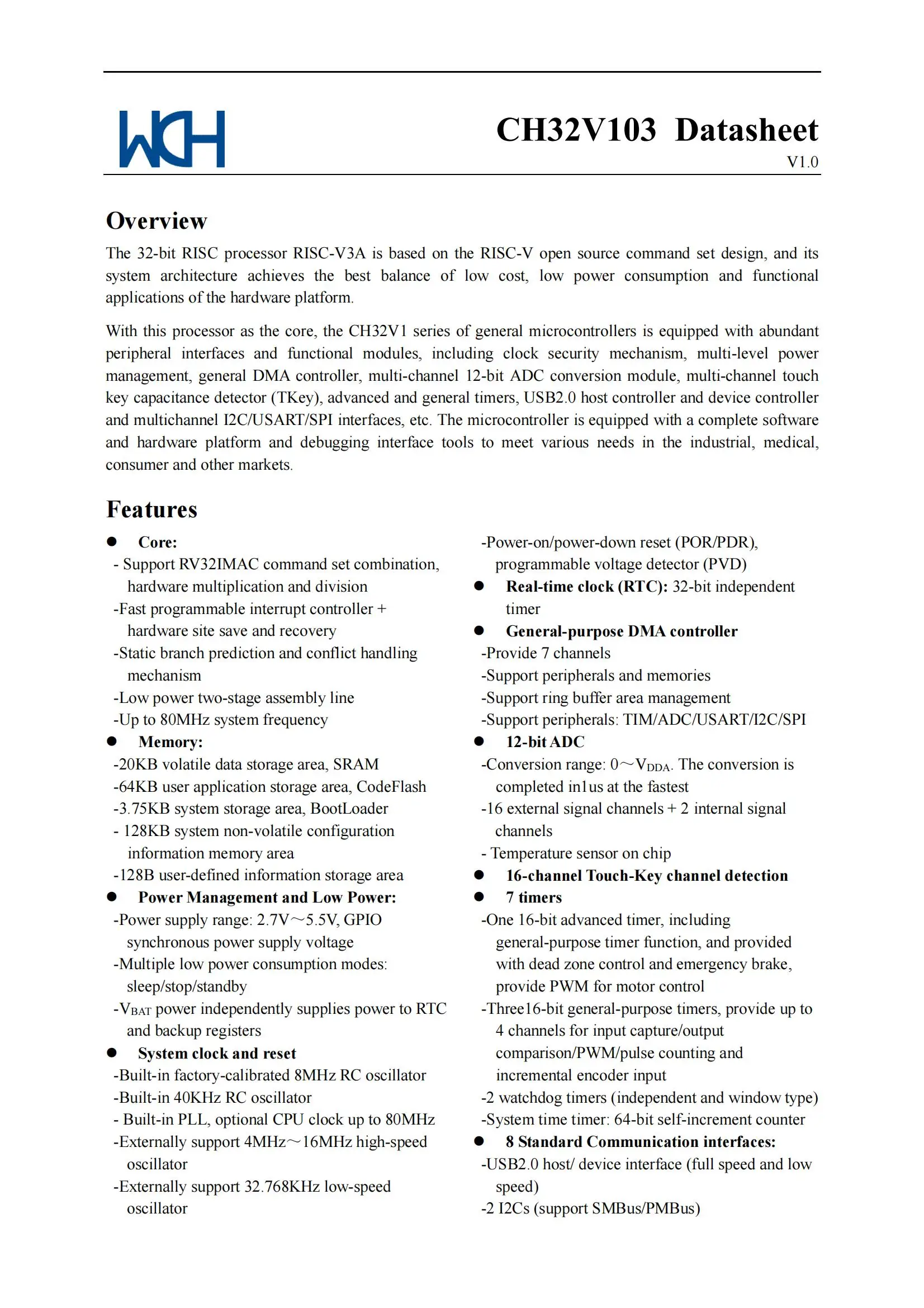 CH32V103-RISC-V MCU mejorado de 32 bits, Grado industrial, 10 unidades por lote