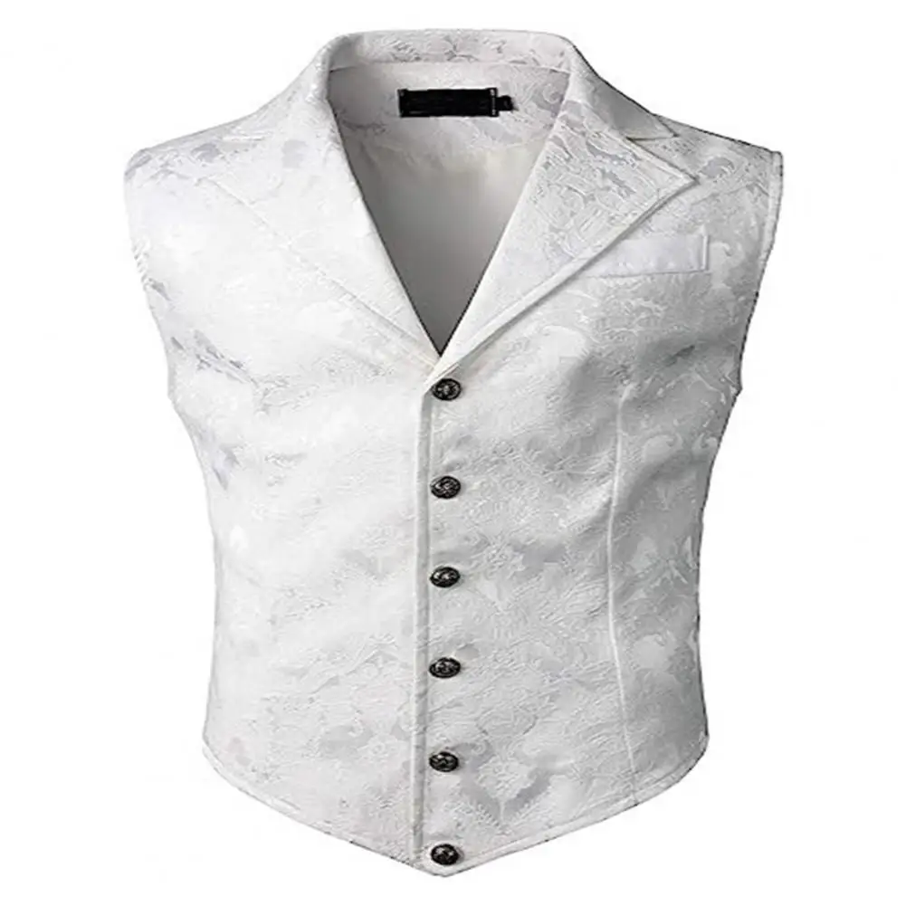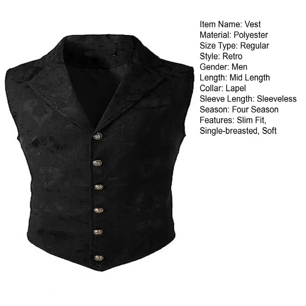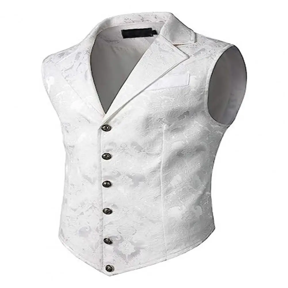 Chaleco de cierre de botón de un solo pecho, chaleco de negocios Retro ajustado para hombre con cuello vuelto, botones de un solo pecho para boda