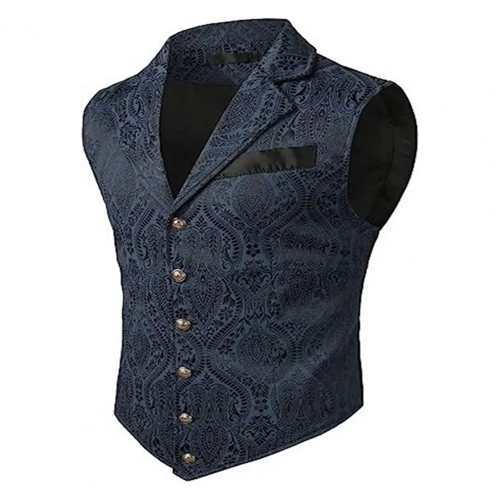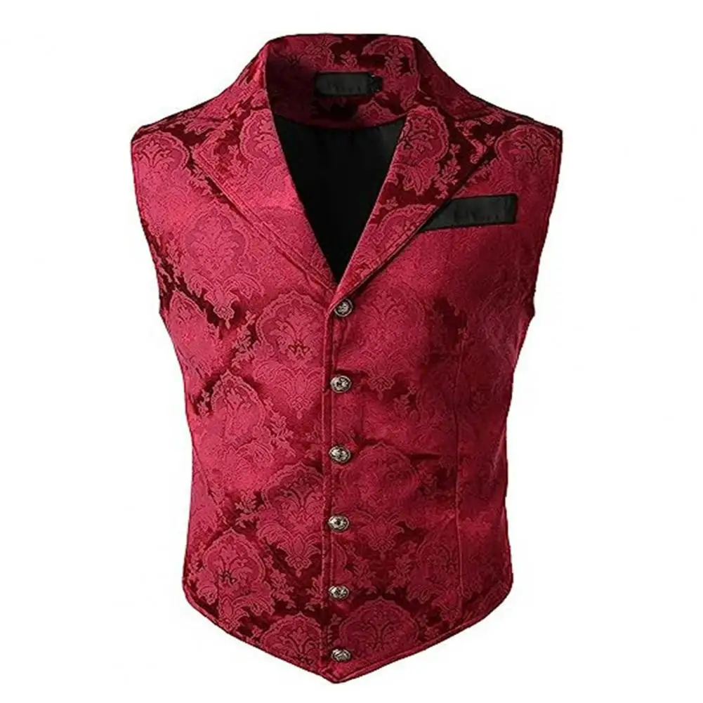 Chaleco de cierre de botón de un solo pecho, chaleco de negocios Retro ajustado para hombre con cuello vuelto, botones de un solo pecho para boda