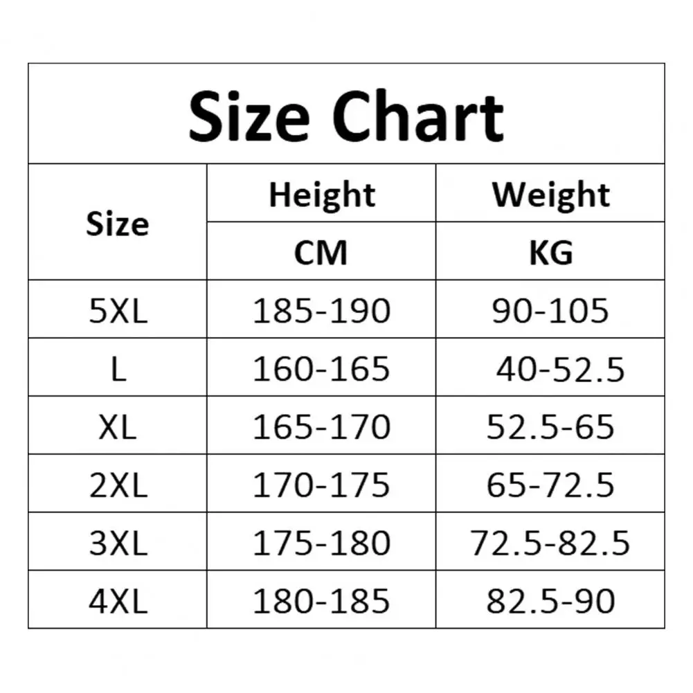 5XL, altura: 185-190cm, peso adecuado: 90-105kg (aprox.)