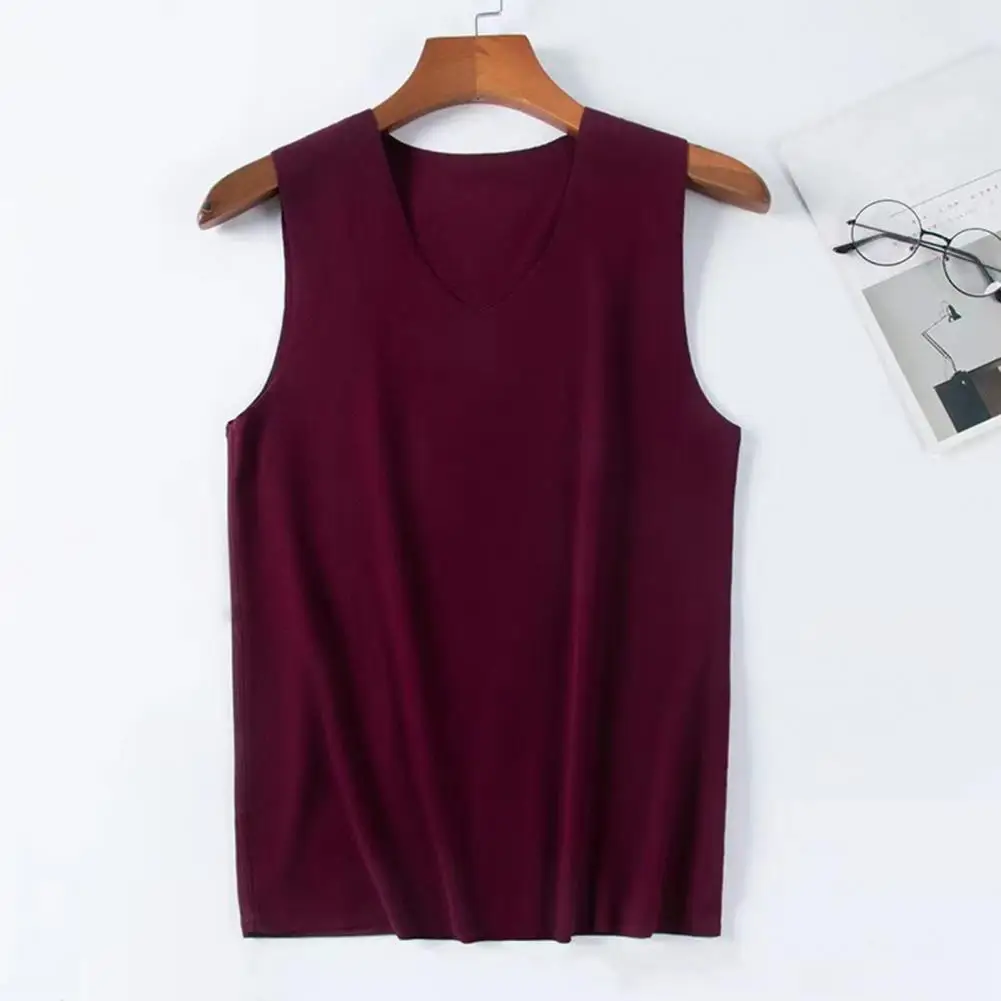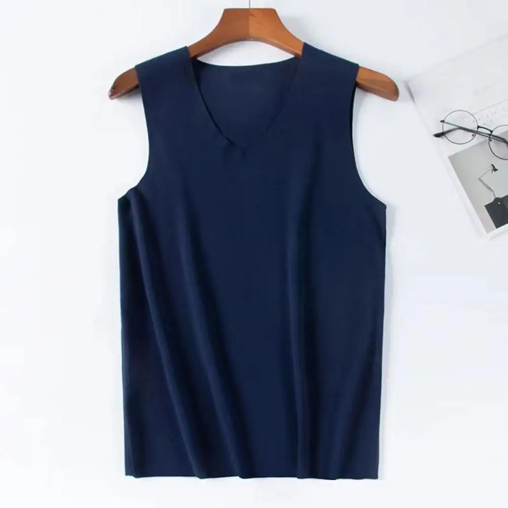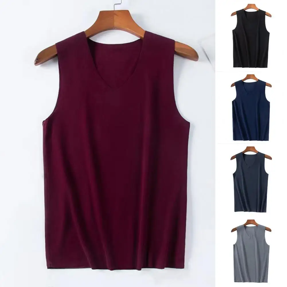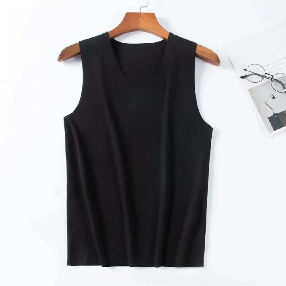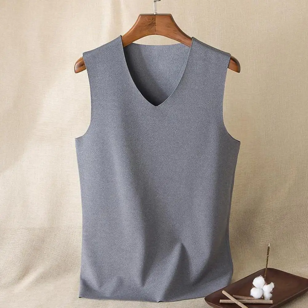 Chaleco elástico ajustado para hombre, chaleco térmico sin costuras de invierno, ropa interior sin mangas con cuello en V, ropa interior elástica ajustada para el calor