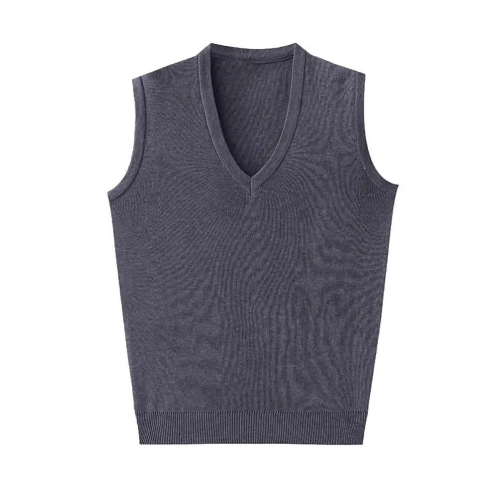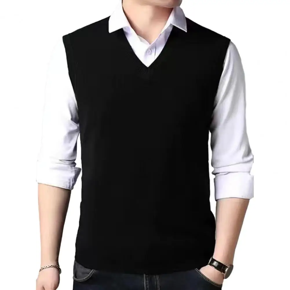 Chaleco de punto informal Versátil para hombres de mediana edad con cuello en V Suéter de punto Chaleco ajustado sin mangas con puños acanalados Primavera