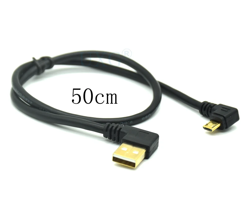 Ángulo recto/90 grados para una conexión muy conveniente, convierte un cable micro tipo B (5 pines) macho a USB 2.0 tipo A macho.