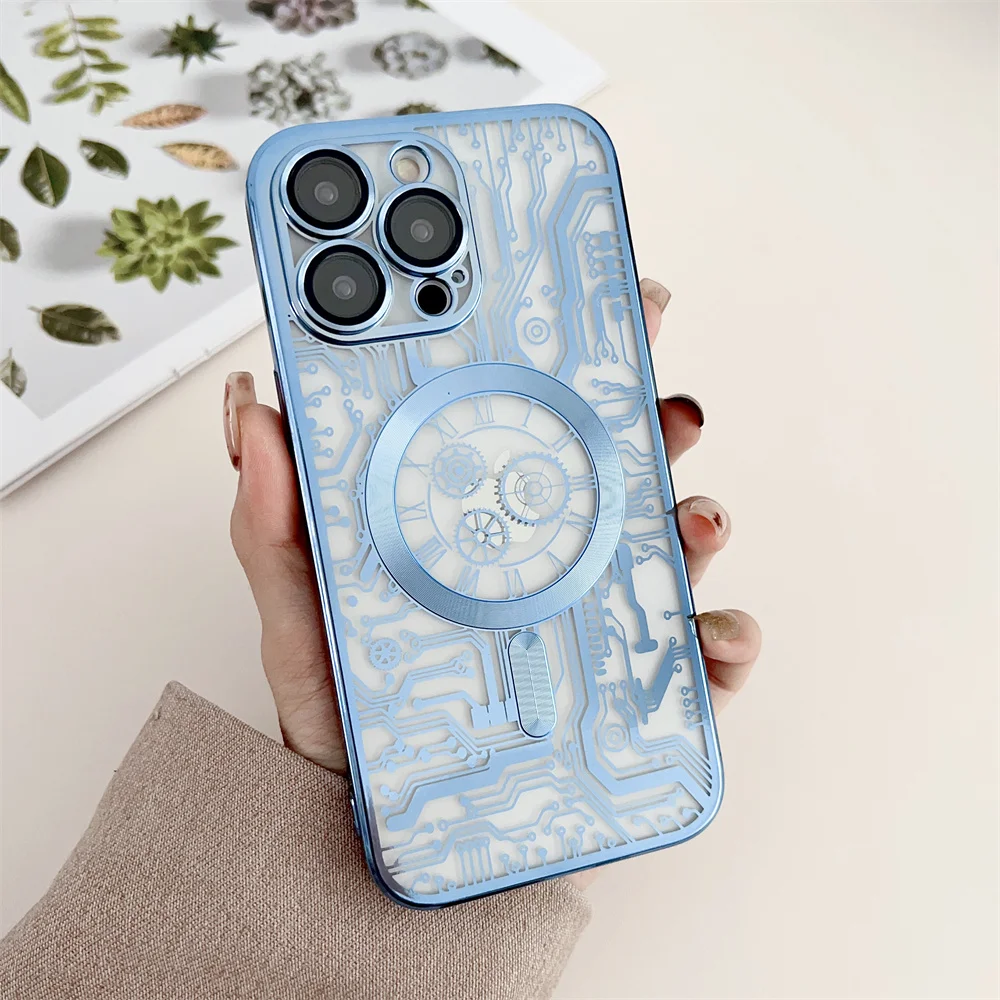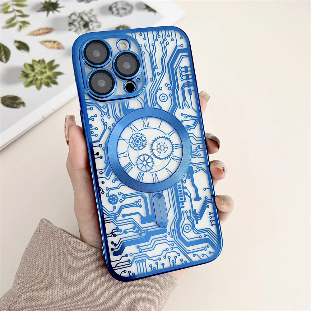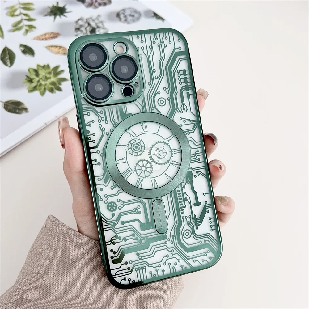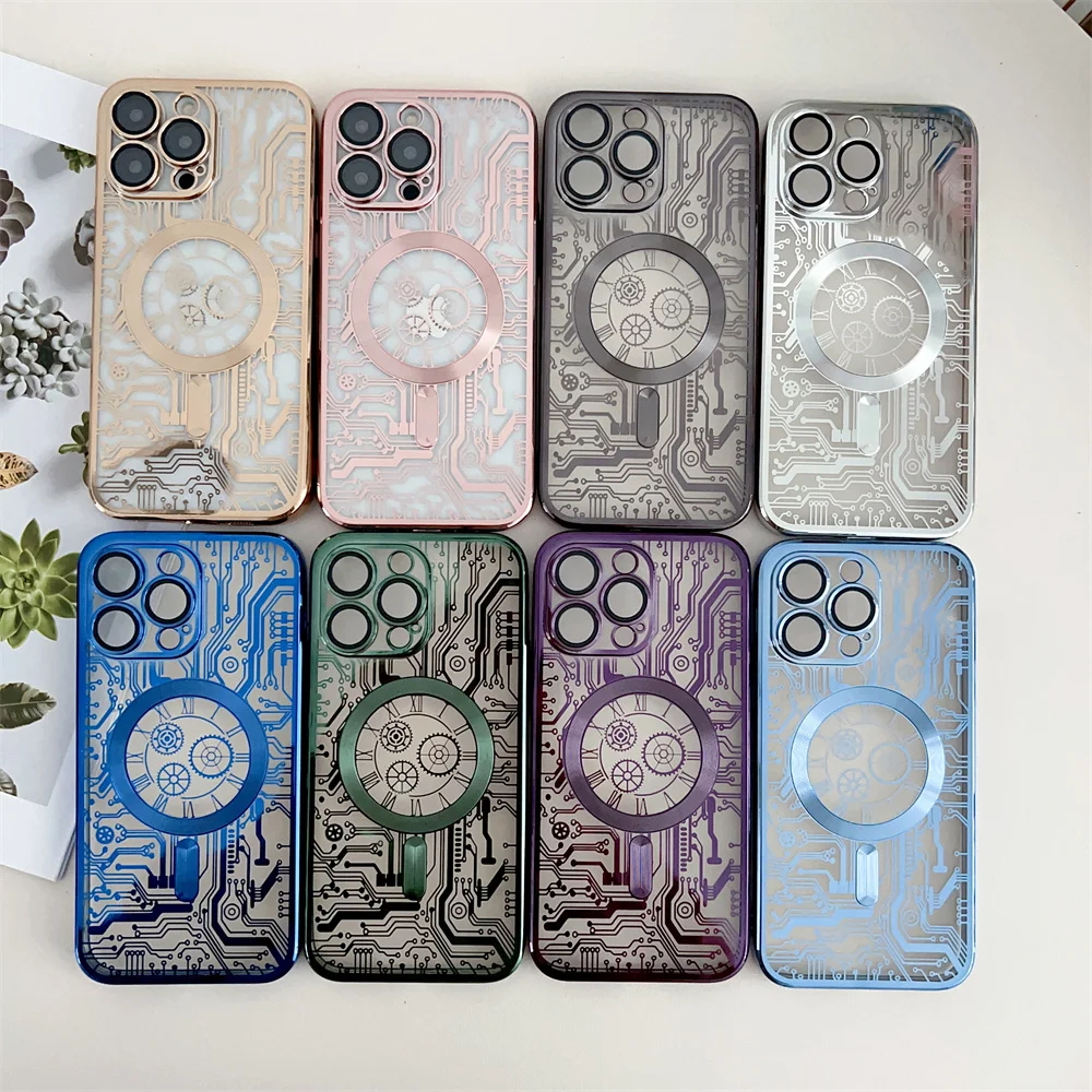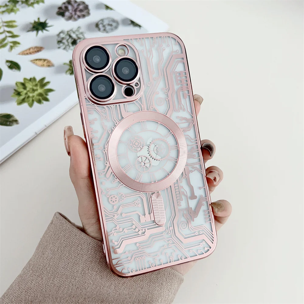 Chapado de lujo para Magsafe funda de carga inalámbrica para iPhone 11 12 13 14 15 16 Pro Max Plus fundas de teléfono cubierta de parachoques magnético suave