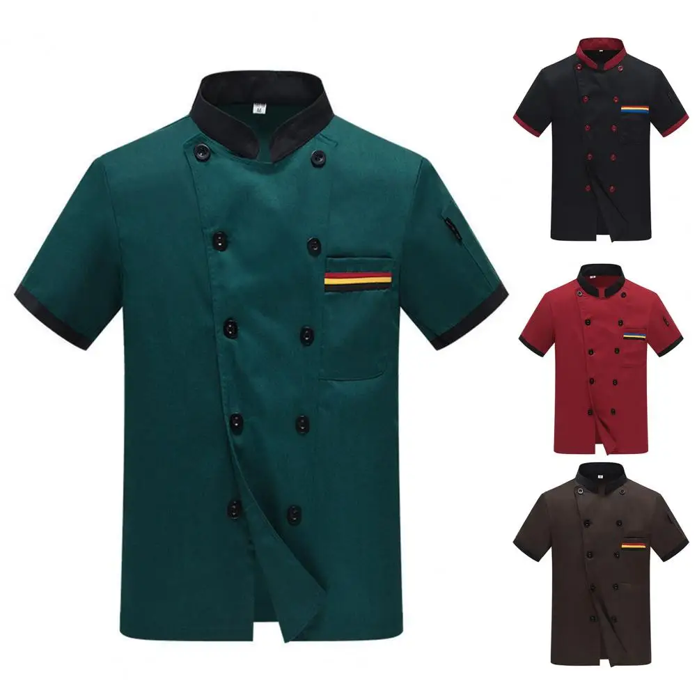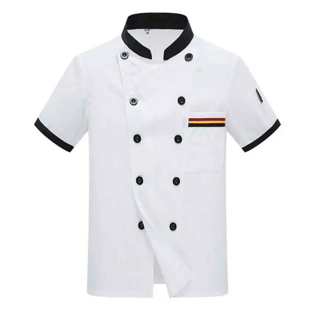 Comprar Chaqueta fina de camarero, uniforme de Chef, camisa con cuello levantado, absorbe la humedad, servicio de alimentos de panadería, abrigo de cocinero a prueba de manchas