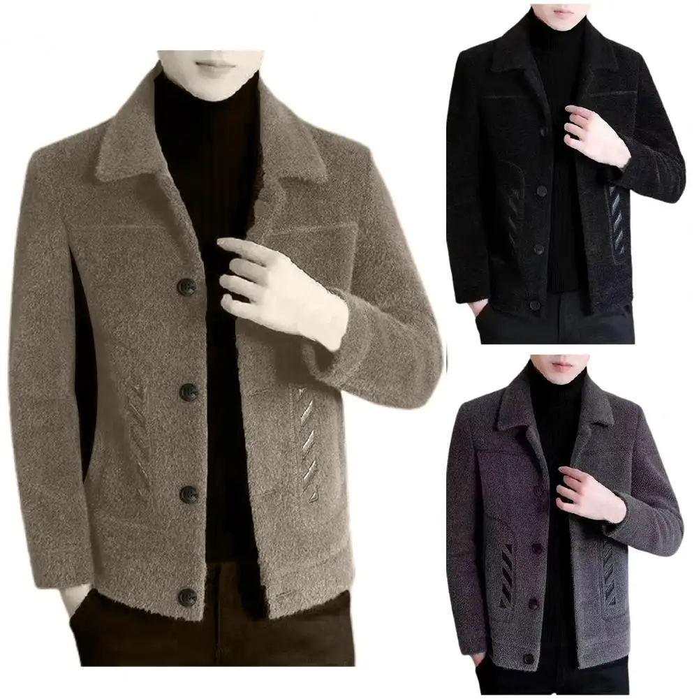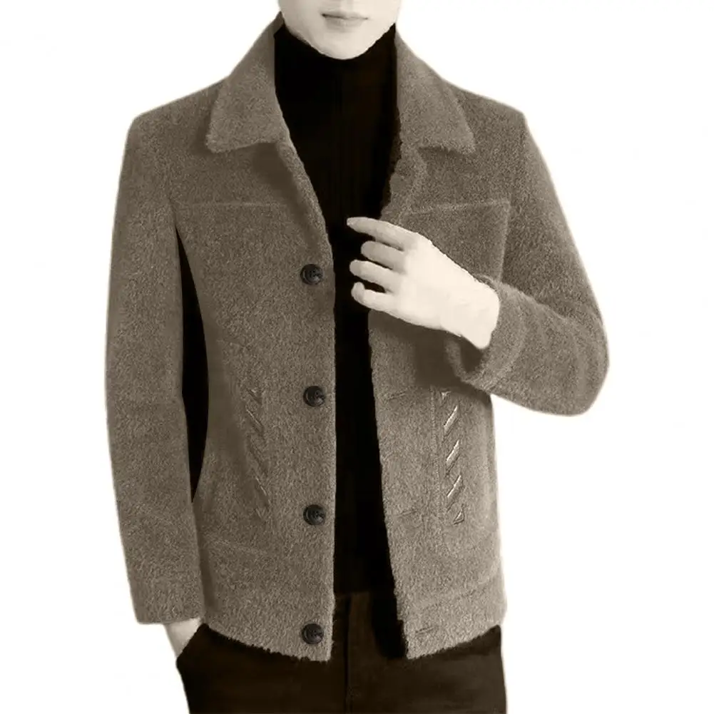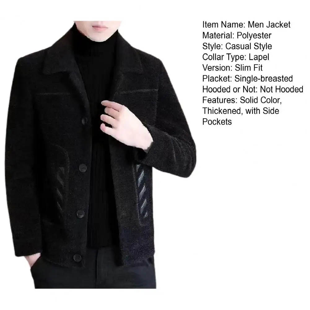 Comprar Chaqueta informal clásica para hombre, abrigo ajustado con diseño de solapa, bolsillos laterales, abrigo grueso de Color sólido con botones, otoño