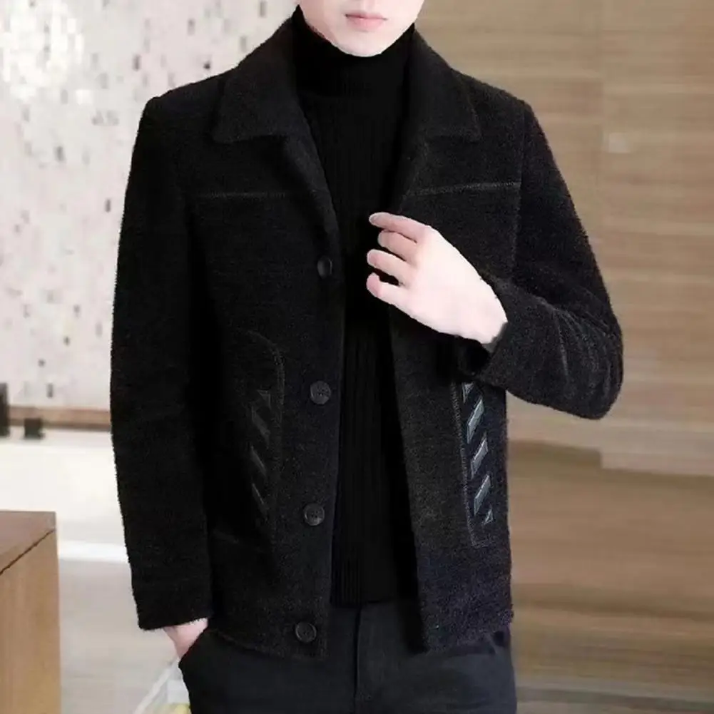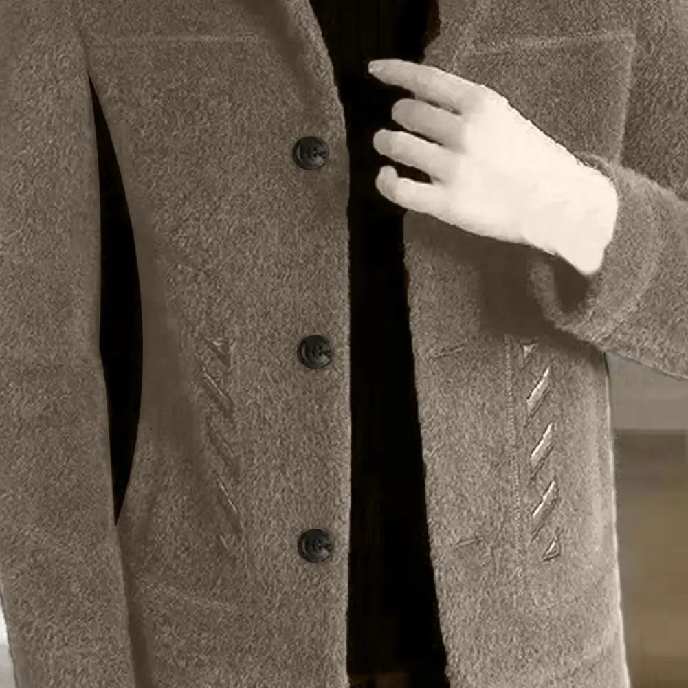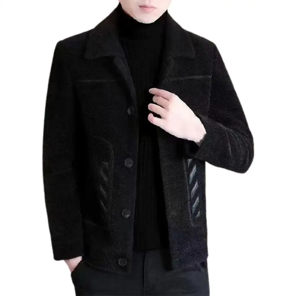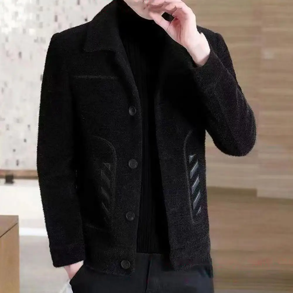 Comprar Chaqueta informal clásica para hombre, abrigo ajustado con diseño de solapa, bolsillos laterales, abrigo grueso de Color sólido con botones, otoño