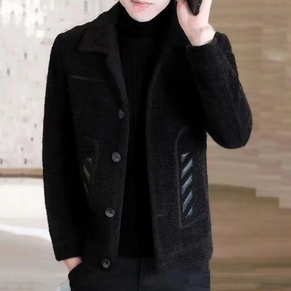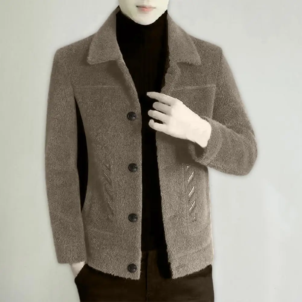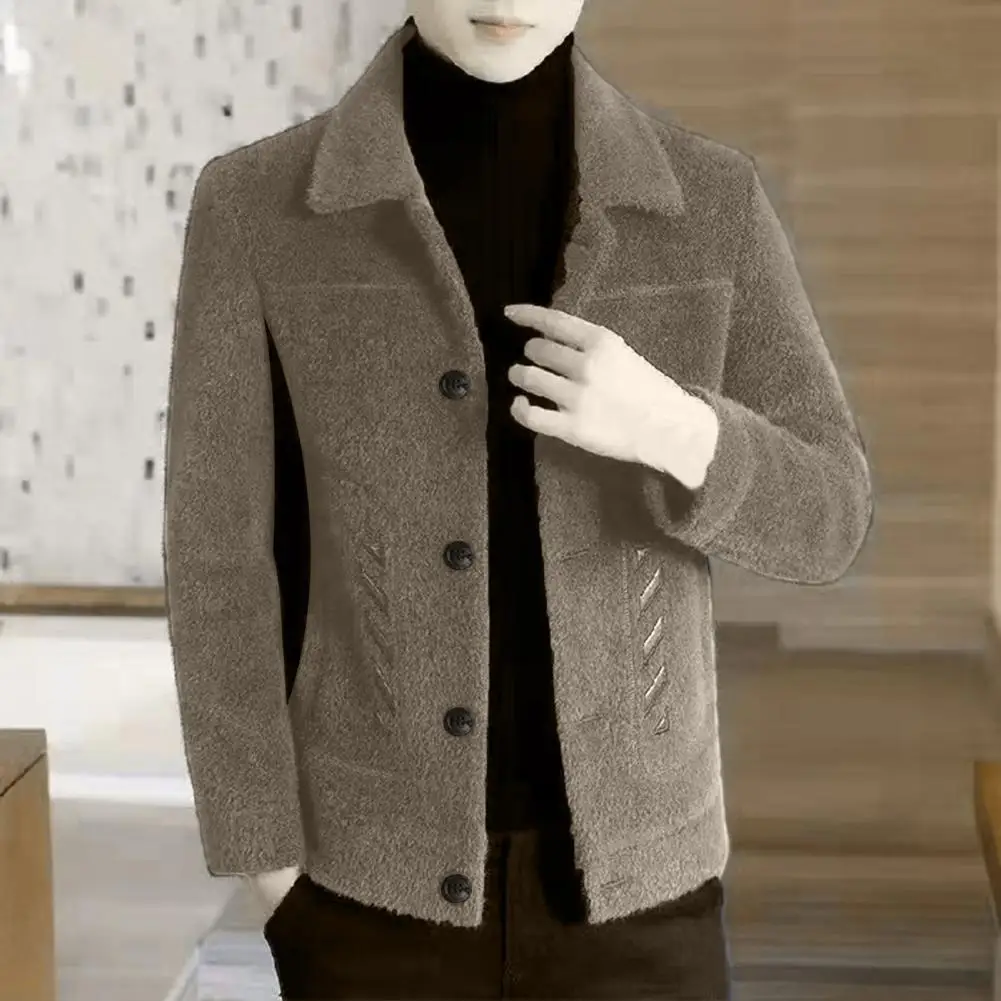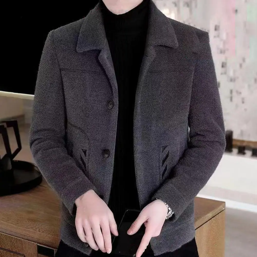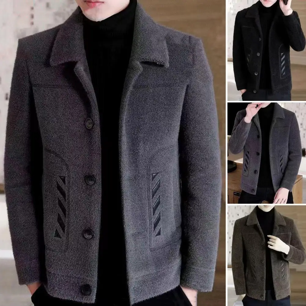 Comprar Chaqueta informal clásica para hombre, abrigo ajustado con diseño de solapa, bolsillos laterales, abrigo grueso de Color sólido con botones, otoño