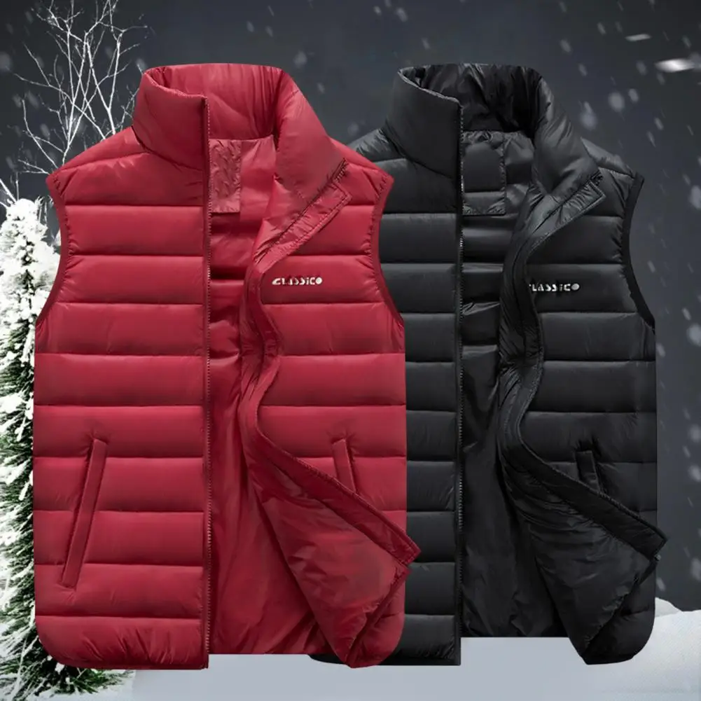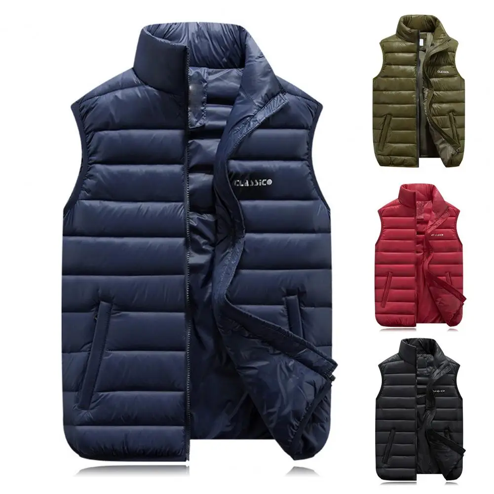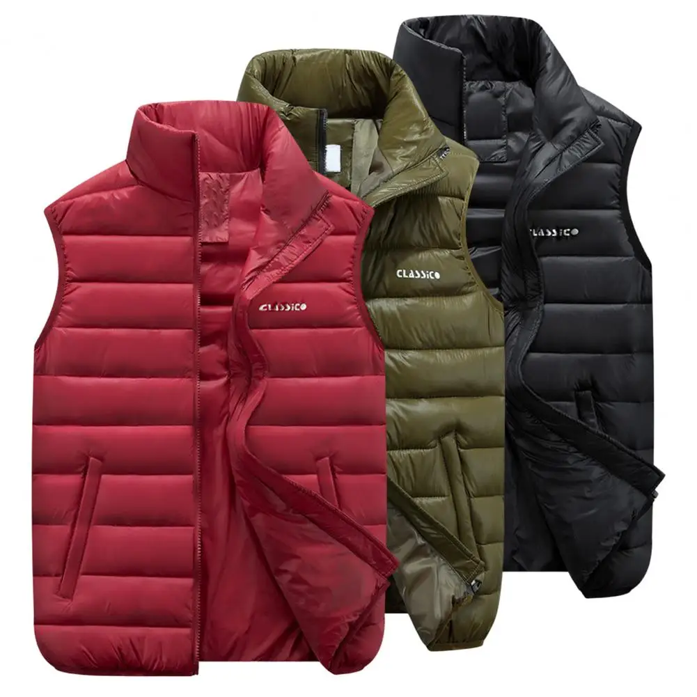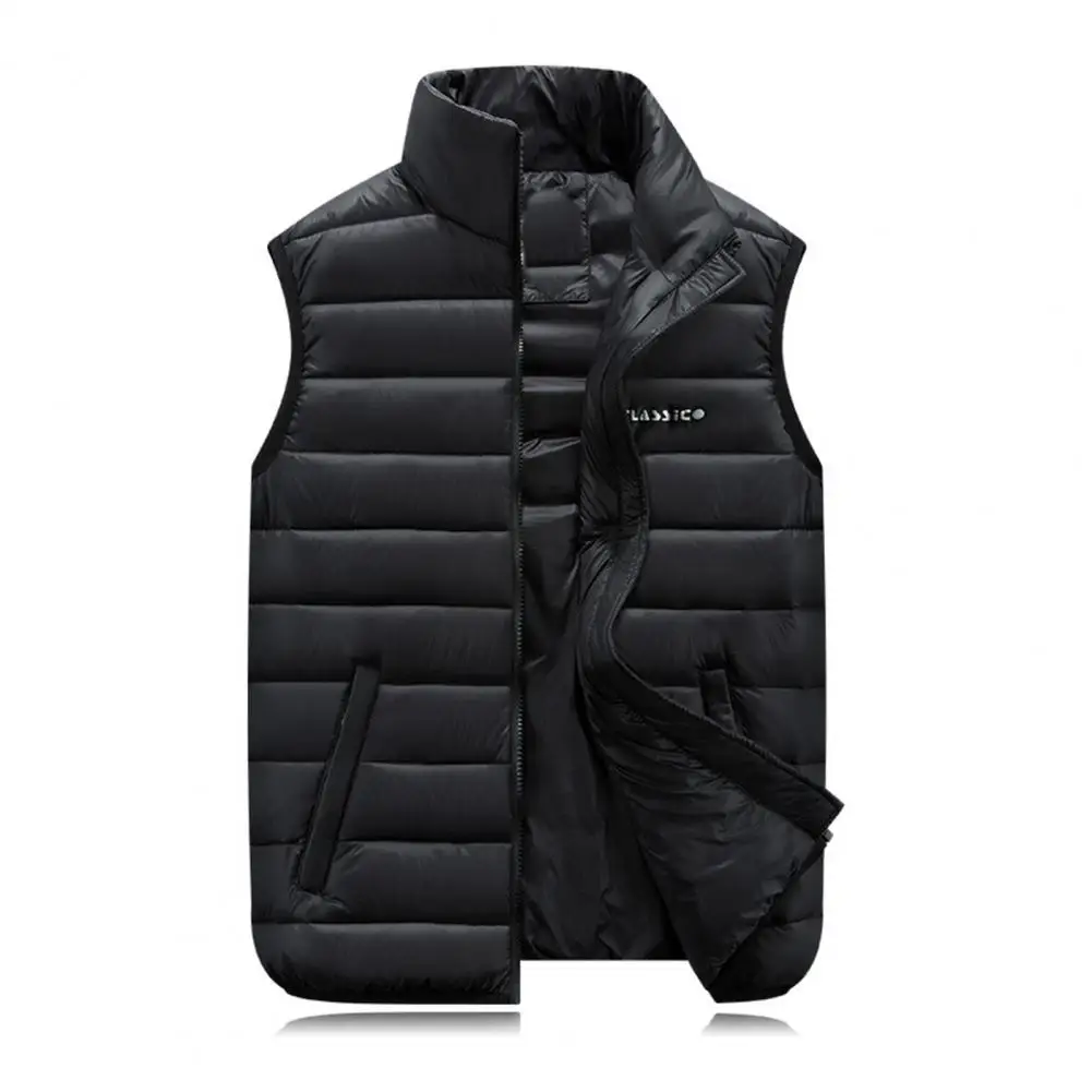 Comprar Chaqueta Popular sin mangas para hombre, chaleco de Color sólido con bolsillos y cremallera, a prueba de frío
