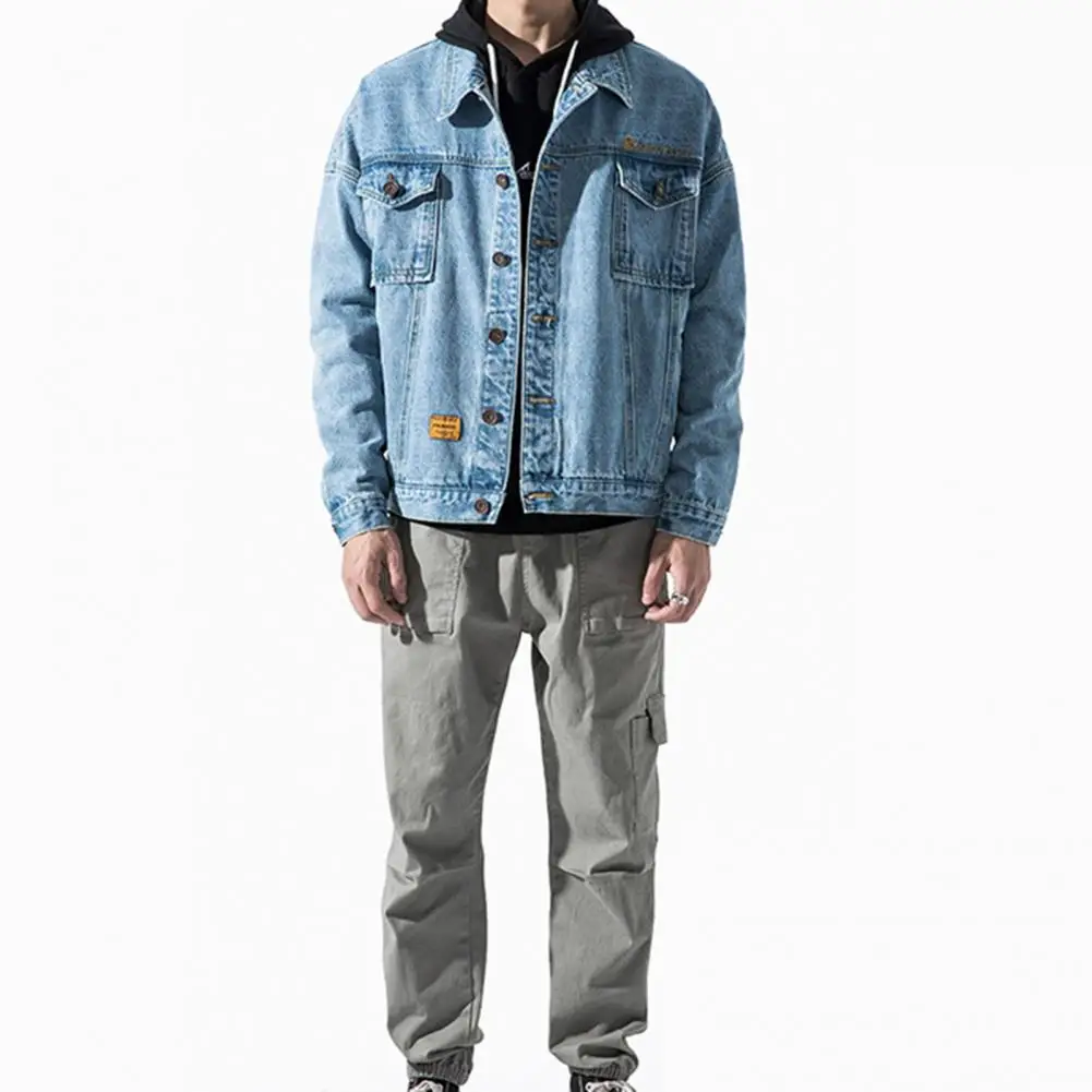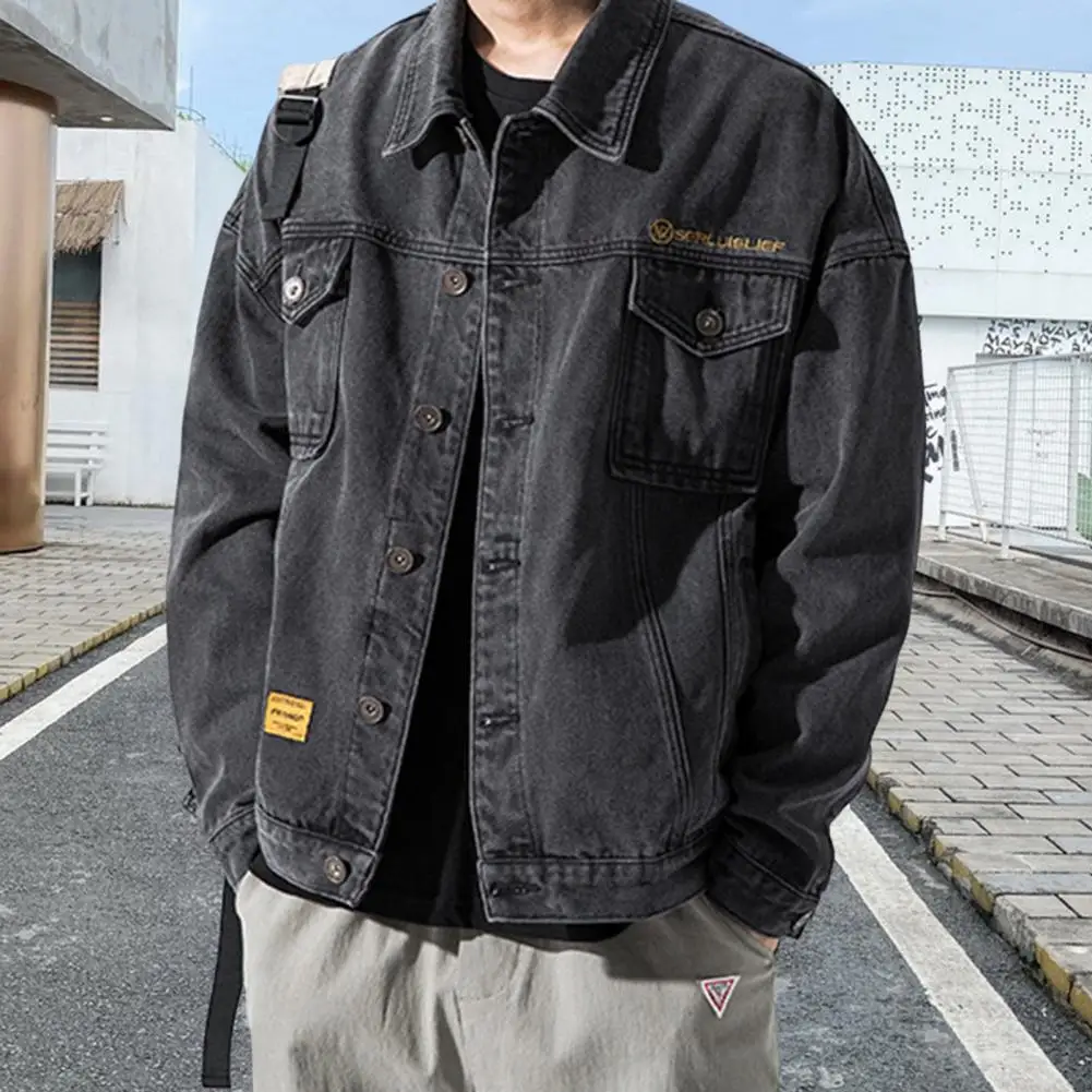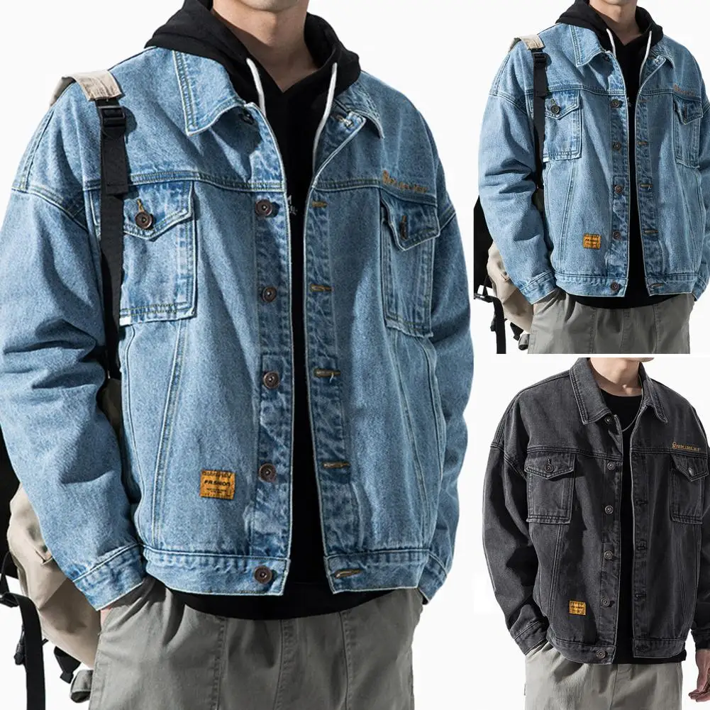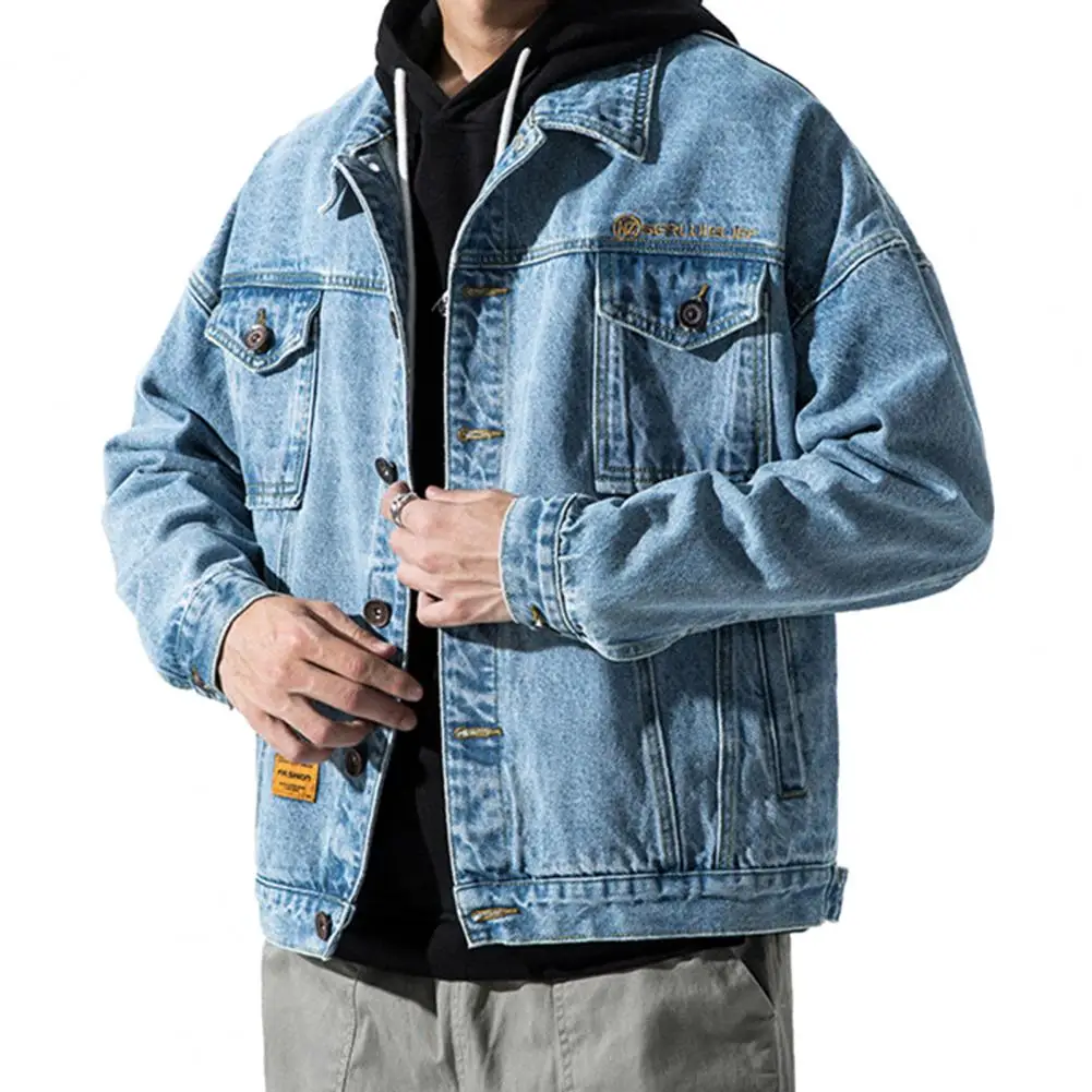 Comprar Chaqueta vaquera con estilo para hombre, abrigo holgado de manga larga con botonadura única, combina con todo
