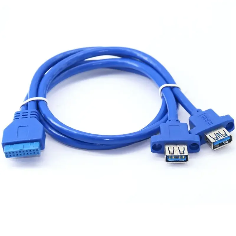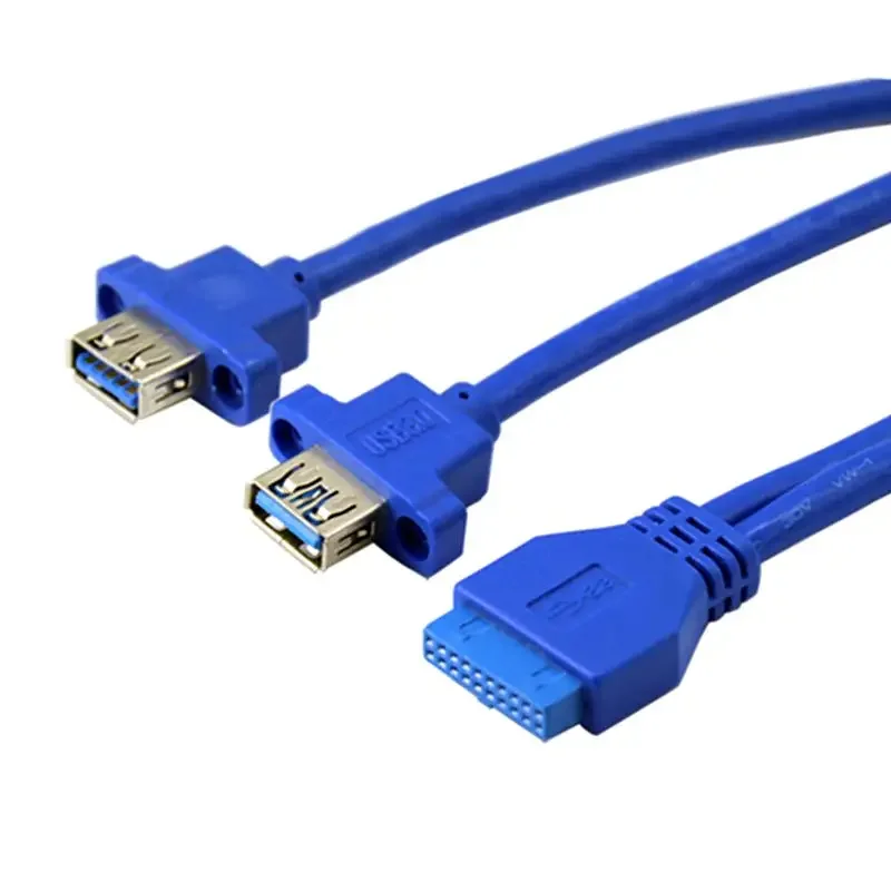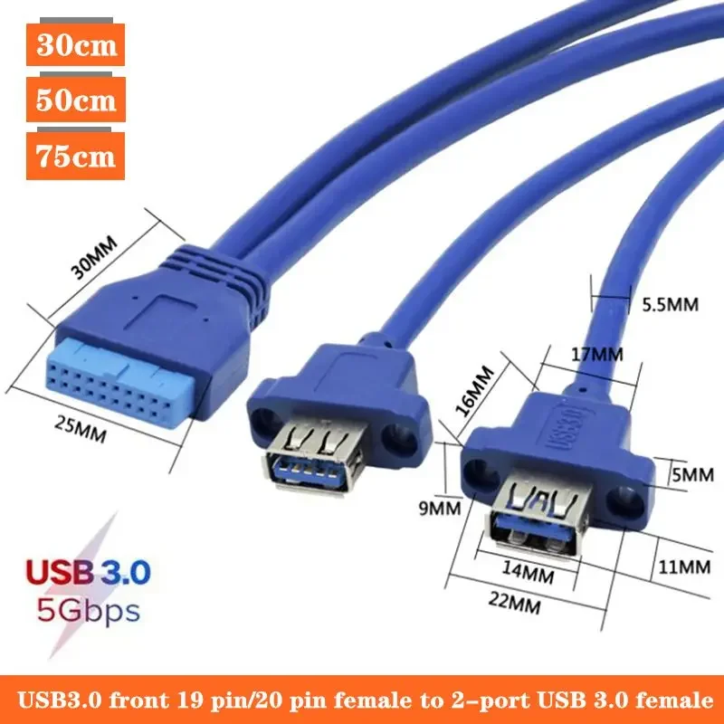 Tipo de panel de instalación de rosca interna USB 3.0 de doble puerto a placa base Cable de 20 pines 30 cm 50 cm 75 cm;