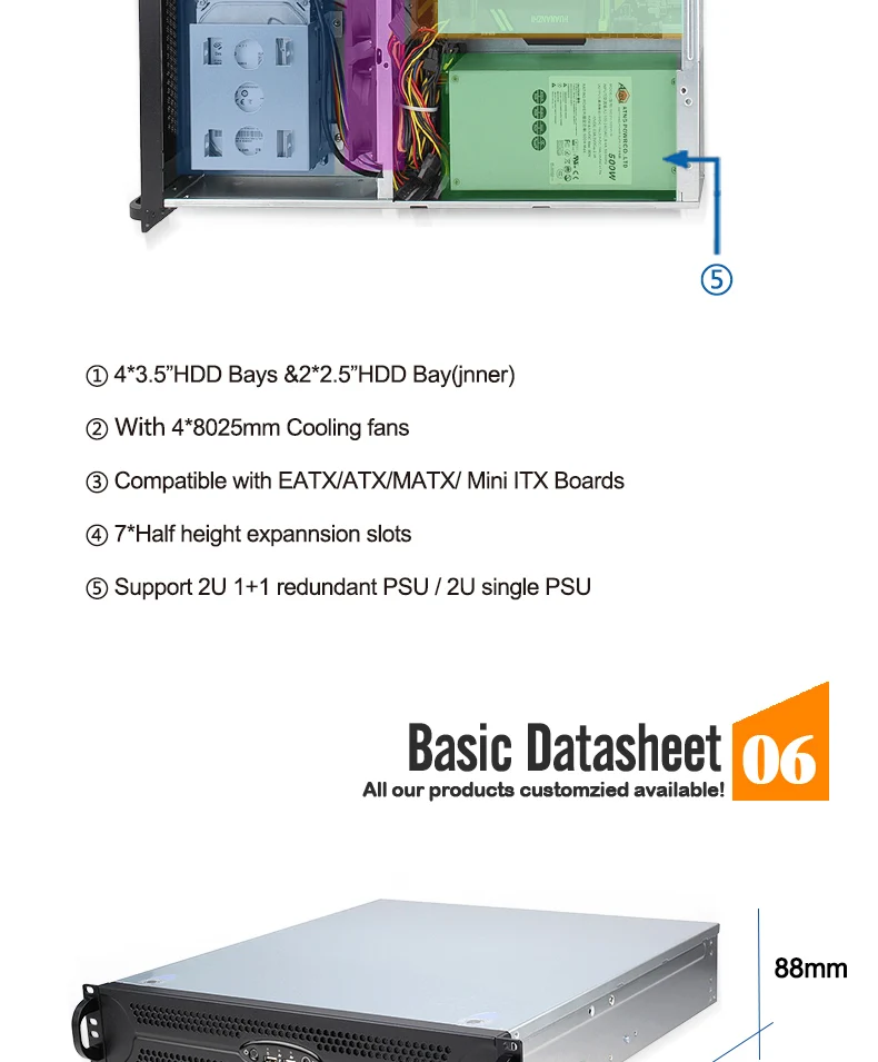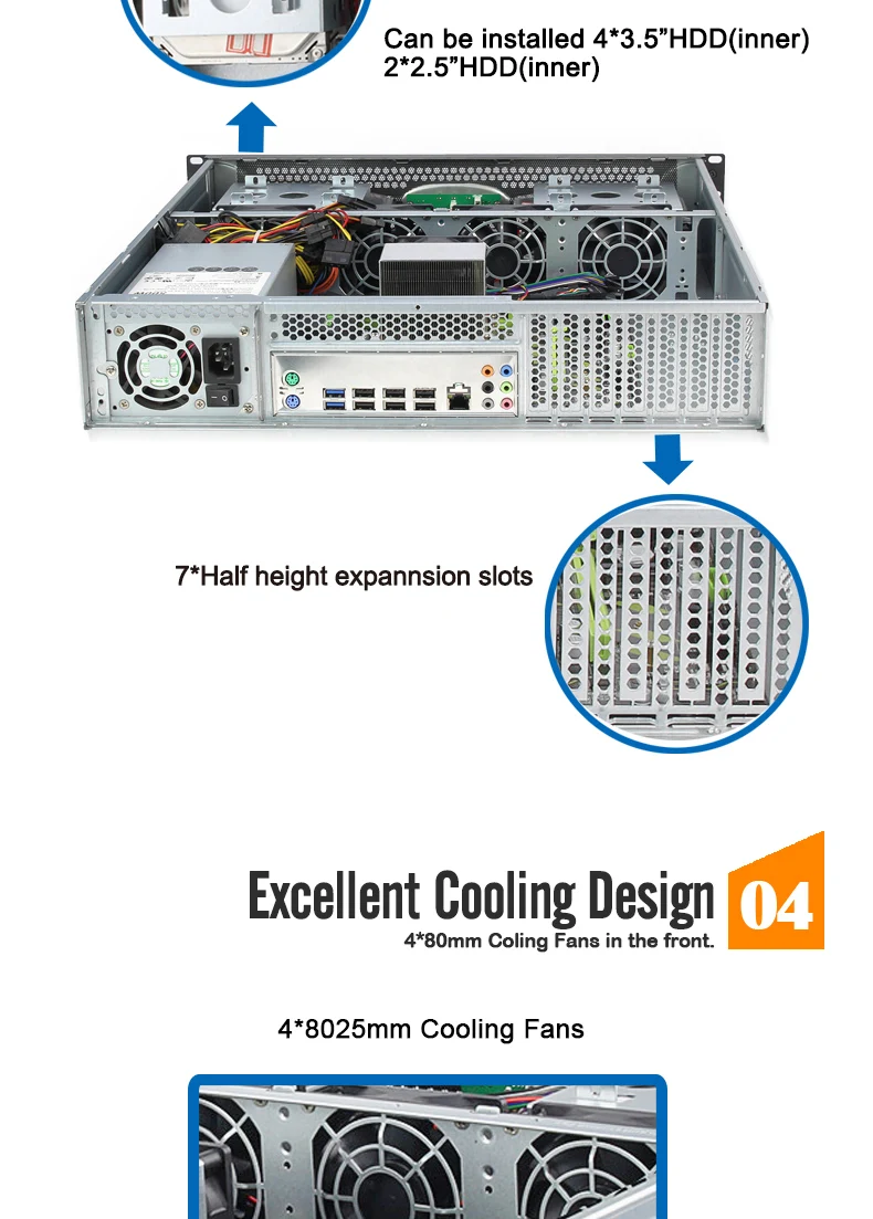 El precio es solo para el estuche con ventiladores de refrigeración. Sin incluir la placa base, la fuente de alimentación, etc. Todos estos son referencia para la instalación completa del servidor. Si necesita el servidor completo, dígame su configuración detallada. También podemos suministrarlos.