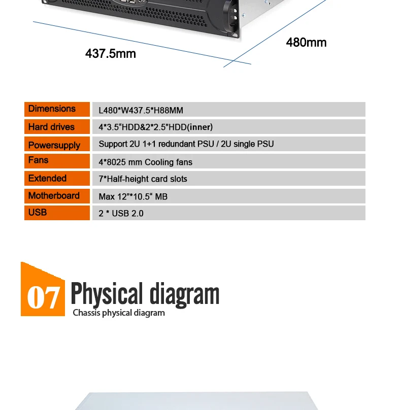 Estuche 2U para placa base atx L480mm 2u chasis de servidor en rack