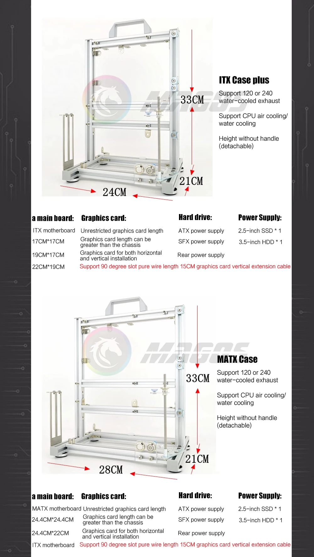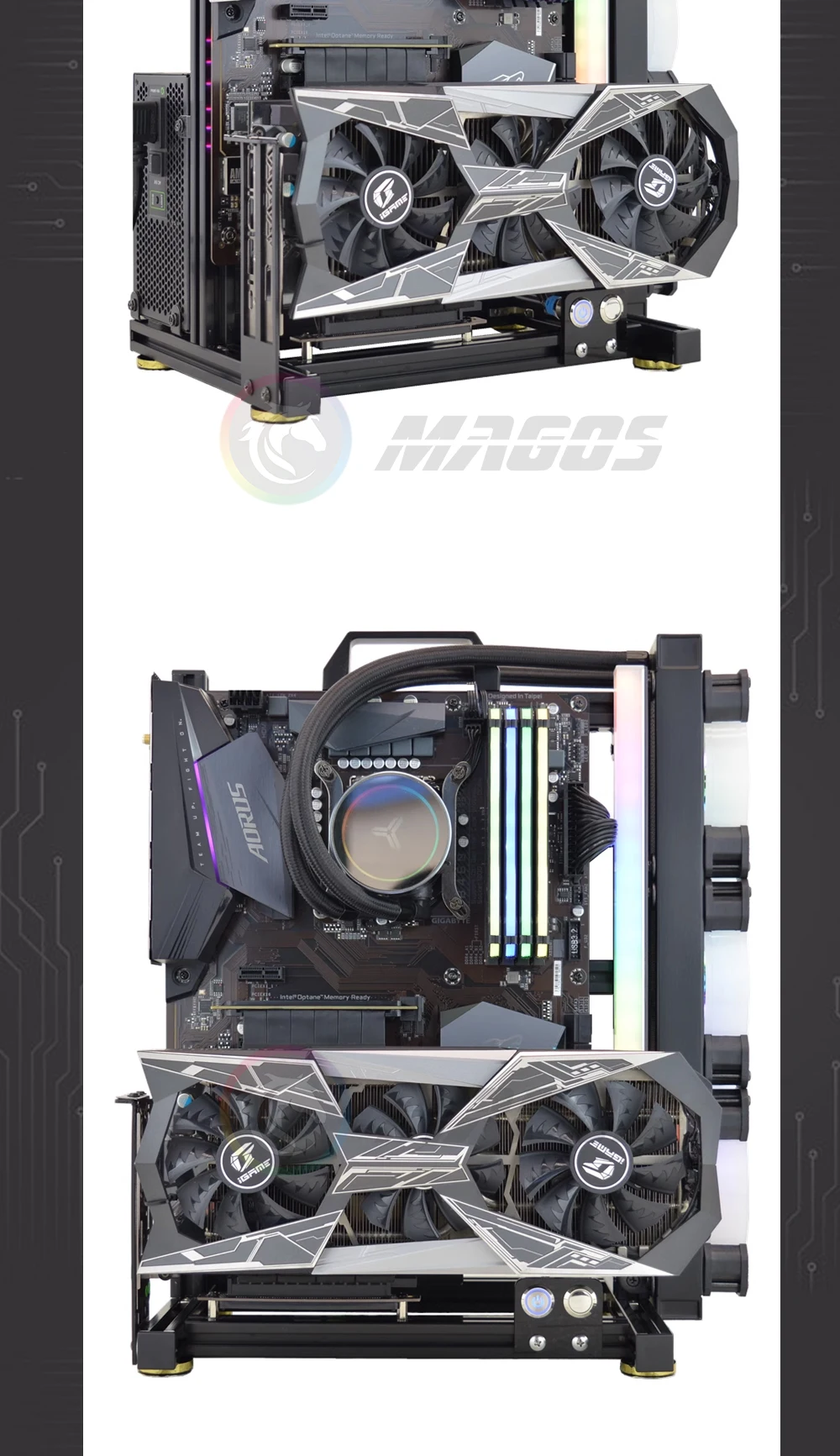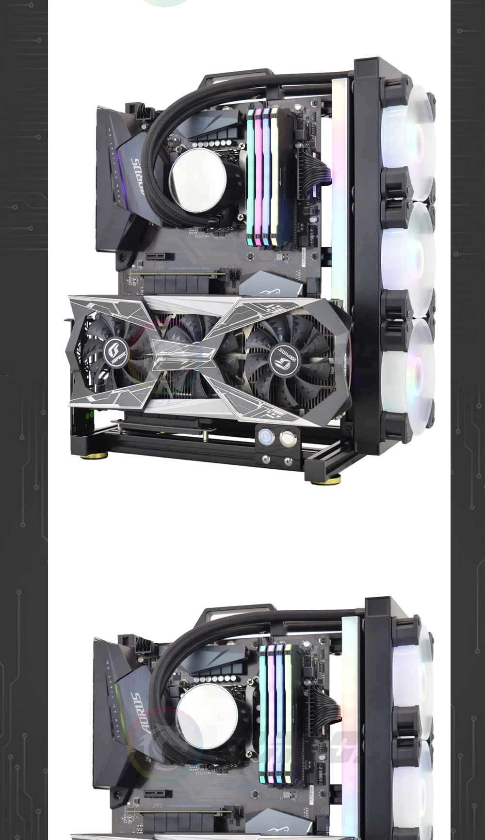 3.Soporte gInstalación horizontal/vertical de la tarjeta de ejercicios (debe traer su propio cable de extensión de GPU vertical),