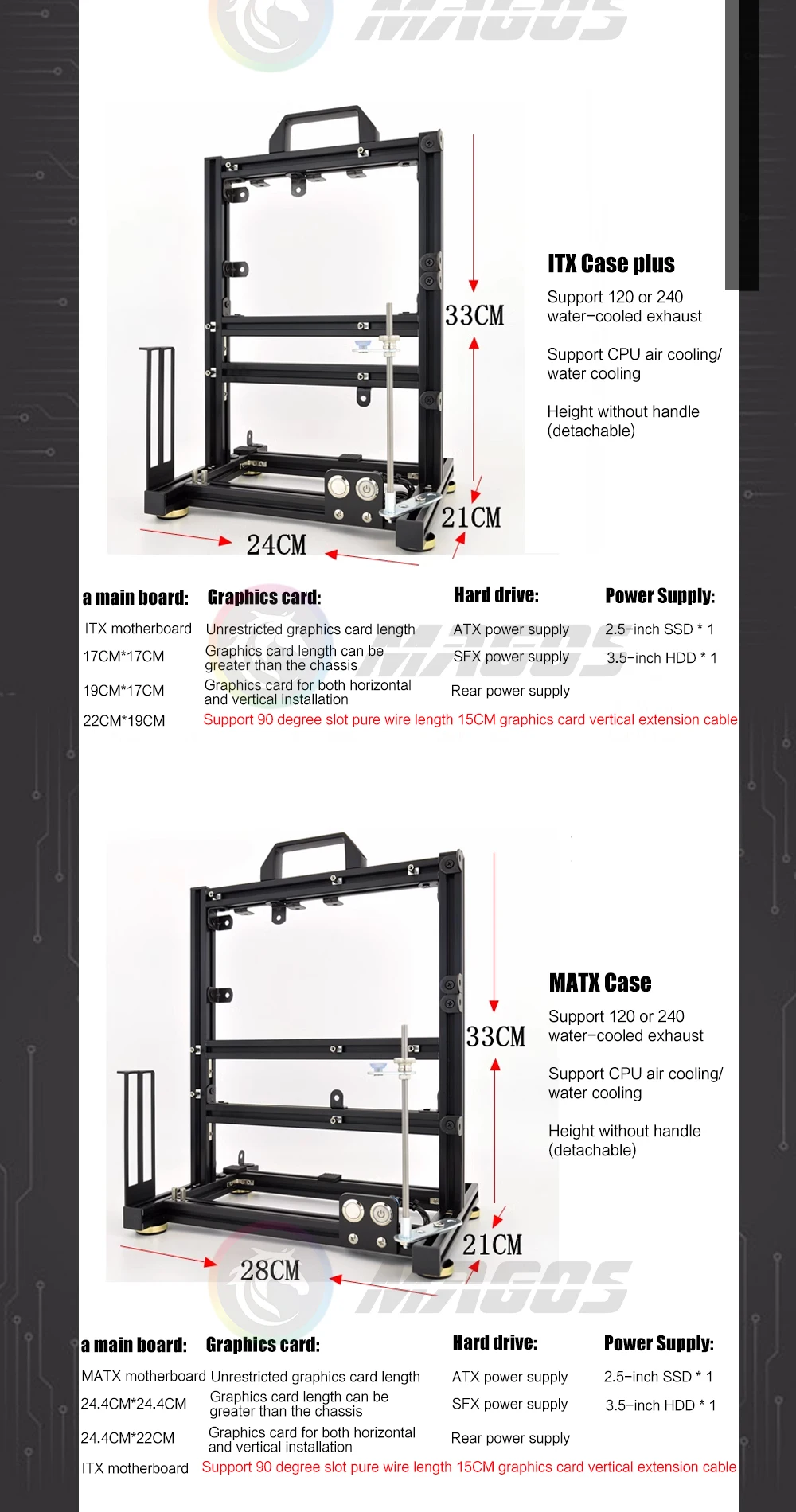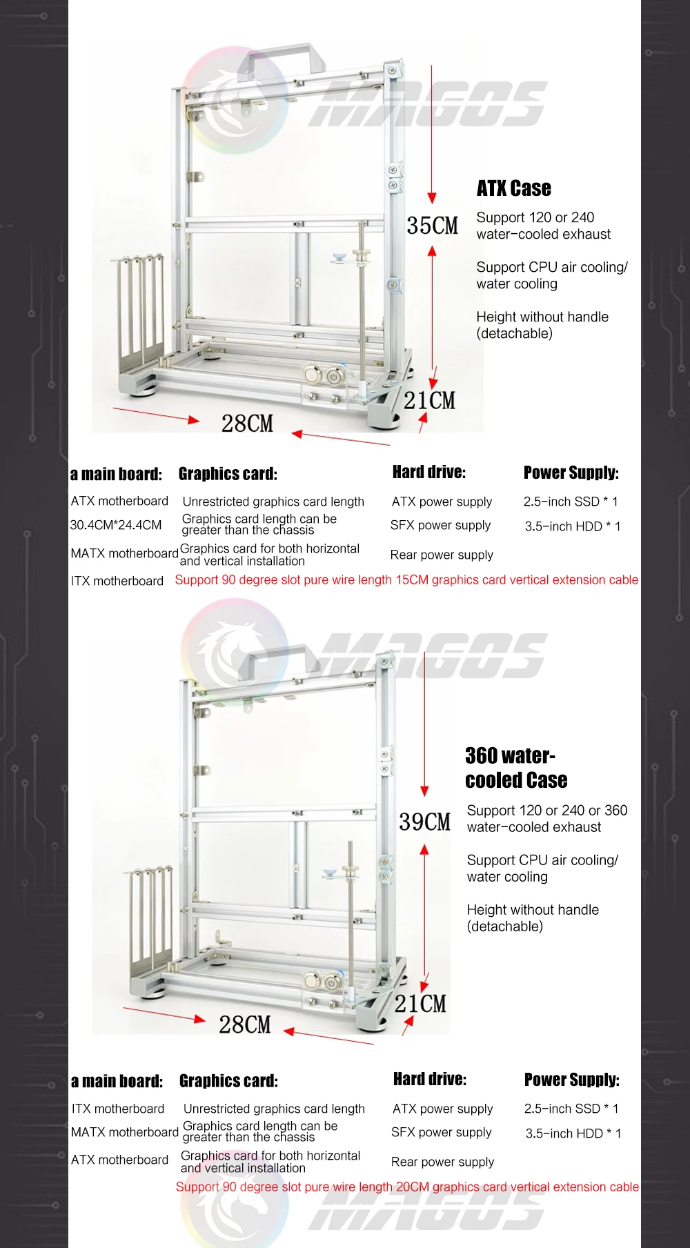 Comprar Chasis de ordenador abierto, marco de aluminio creativo DIY, Enfriador de aire y agua, 360 MOD ATX/ITX/MATX, carcasa de escritorio con marco
