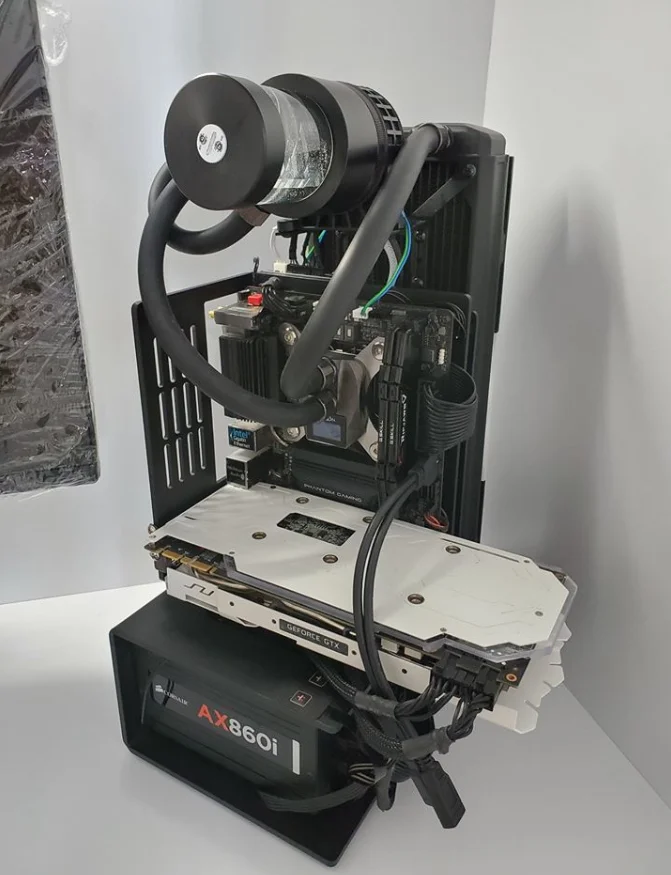 Comprar Chasis refrigerado por agua totalmente abierto de aleación de aluminio mini-itx, plataforma de prueba de bricolaje, compatible con SFX ATX power, tarjeta gráfica, estante vertical